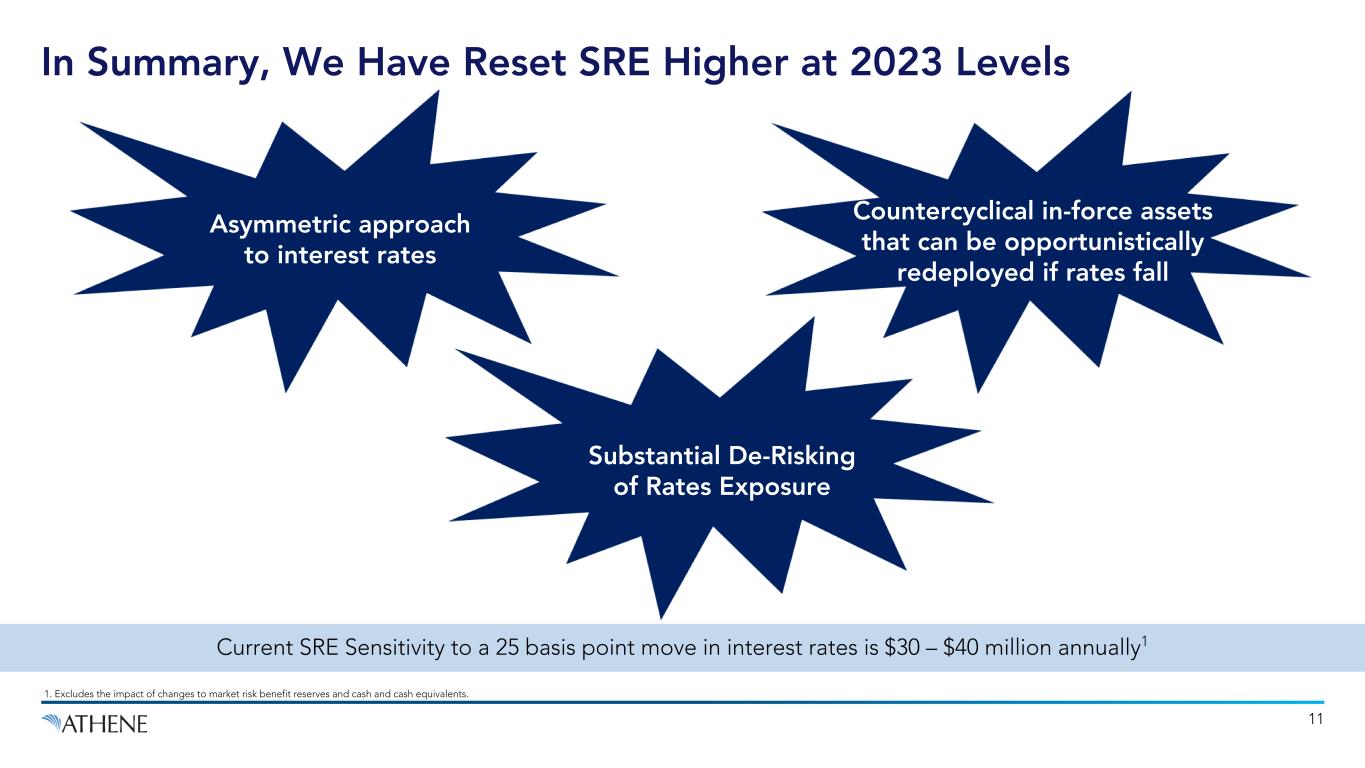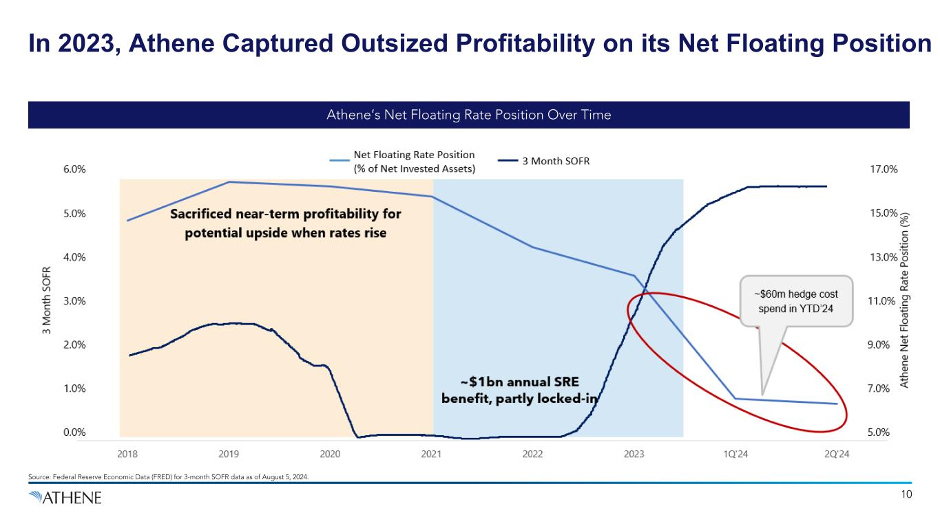 Source: Federal Reserve Economic Data (FRED) for 3-month SOFR data as of August 5, 2024. Athene’s Net Floating Rate Position Over Time In 2023, Athene Captured Outsized Profitability on its Net Floating Position 10
