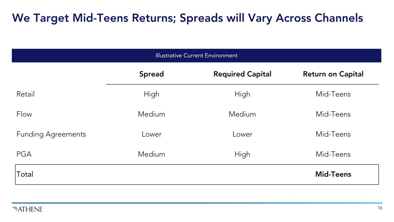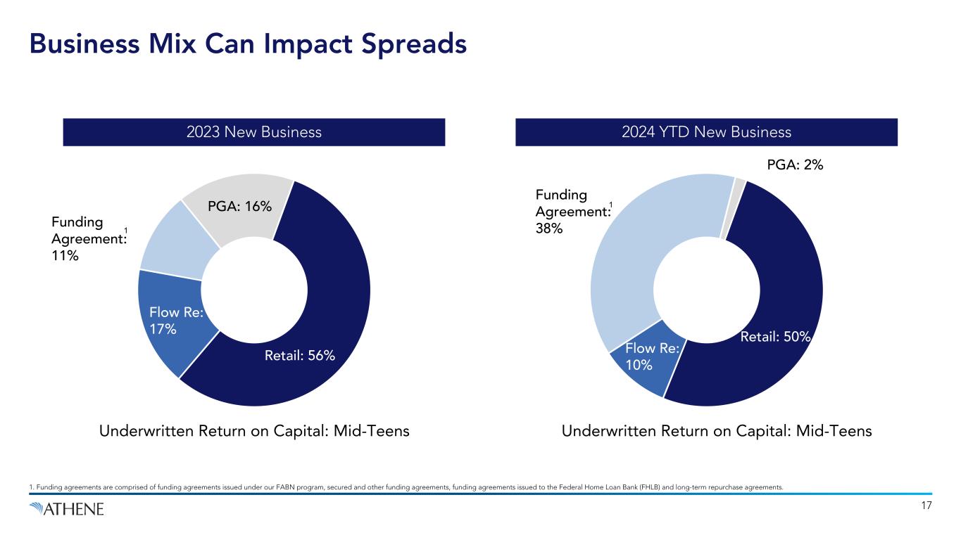 Spread Required Capital Return on Capital Retail High High Mid-Teens Flow Medium Medium Mid-Teens Funding Agreements Lower Lower Mid-Teens PGA Medium High Mid-Teens Total Mid-Teens Illustrative Current Environment We Target Mid-Teens Returns; Spreads will Vary Across Channels 16