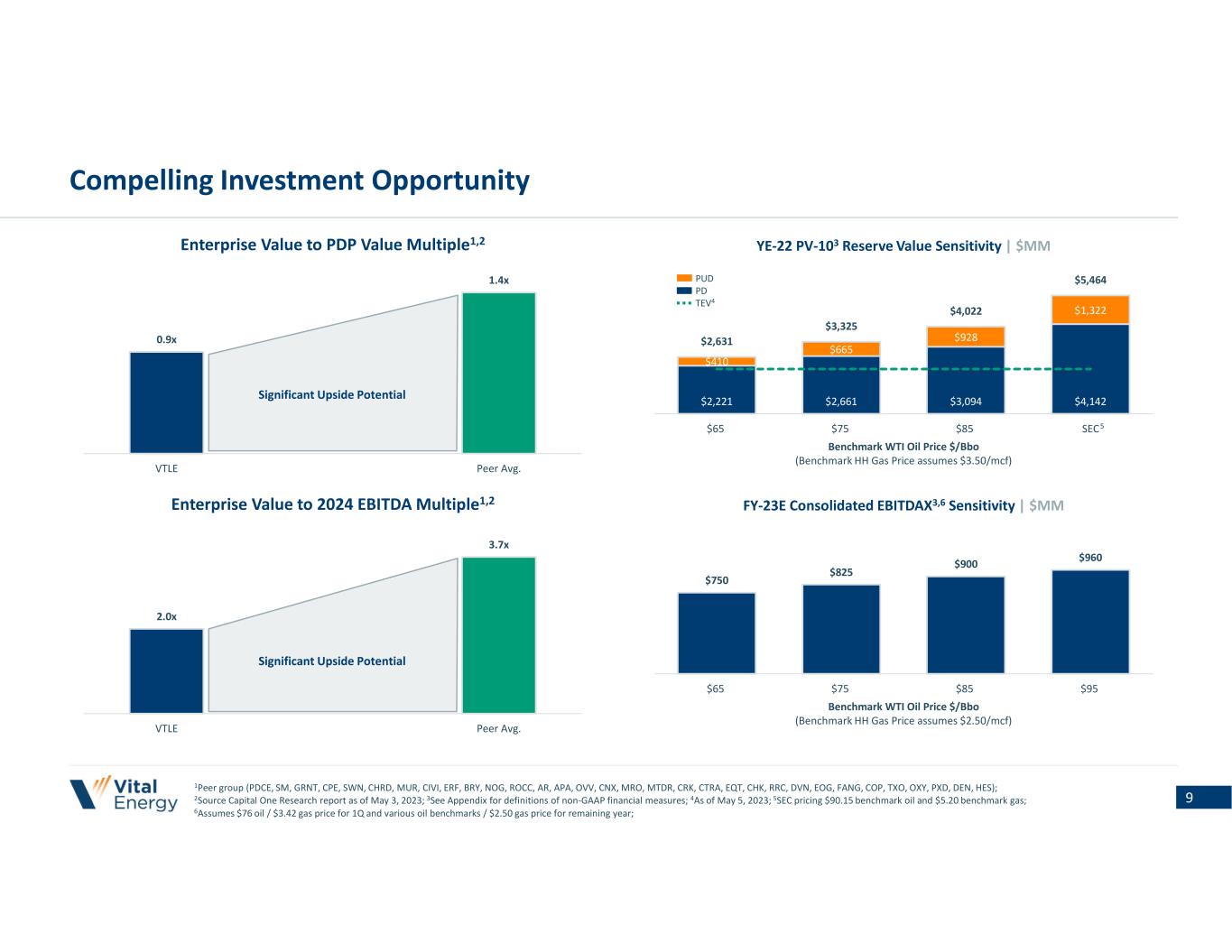 0.9x 1.4x VTLE Peer Avg. Compelling Investment Opportunity 1Peer group (PDCE, SM, GRNT, CPE, SWN, CHRD, MUR, CIVI, ERF, BRY, NOG, ROCC, AR, APA, OVV, CNX, MRO, MTDR, CRK, CTRA, EQT, CHK, RRC, DVN, EOG, FANG, COP, TXO, OXY, PXD, DEN, HES); 2Source Capital One Research report as of May 3, 2023; 3See Appendix for definitions of non-GAAP financial measures; 4As of May 5, 2023; 5SEC pricing $90.15 benchmark oil and $5.20 benchmark gas; 6Assumes $76 oil / $3.42 gas price for 1Q and various oil benchmarks / $2.50 gas price for remaining year; 9 Enterprise Value to PDP Value Multiple1,2 YE-22 PV-103 Reserve Value Sensitivity | $MM Enterprise Value to 2024 EBITDA Multiple1,2 FY-23E Consolidated EBITDAX3,6 Sensitivity | $MM $2,221 $2,661 $3,094 $4,142 $410 $665 $928 $1,322 $2,631 $3,325 $4,022 $5,464 $65 $75 $85 SEC Benchmark WTI Oil Price $/Bbo (Benchmark HH Gas Price assumes $3.50/mcf) $750 $825 $900 $960 $65 $75 $85 $95 Benchmark WTI Oil Price $/Bbo (Benchmark HH Gas Price assumes $2.50/mcf) 2.0x 3.7x VTLE Peer Avg. Significant Upside Potential Significant Upside Potential PUD PD TEV4 5