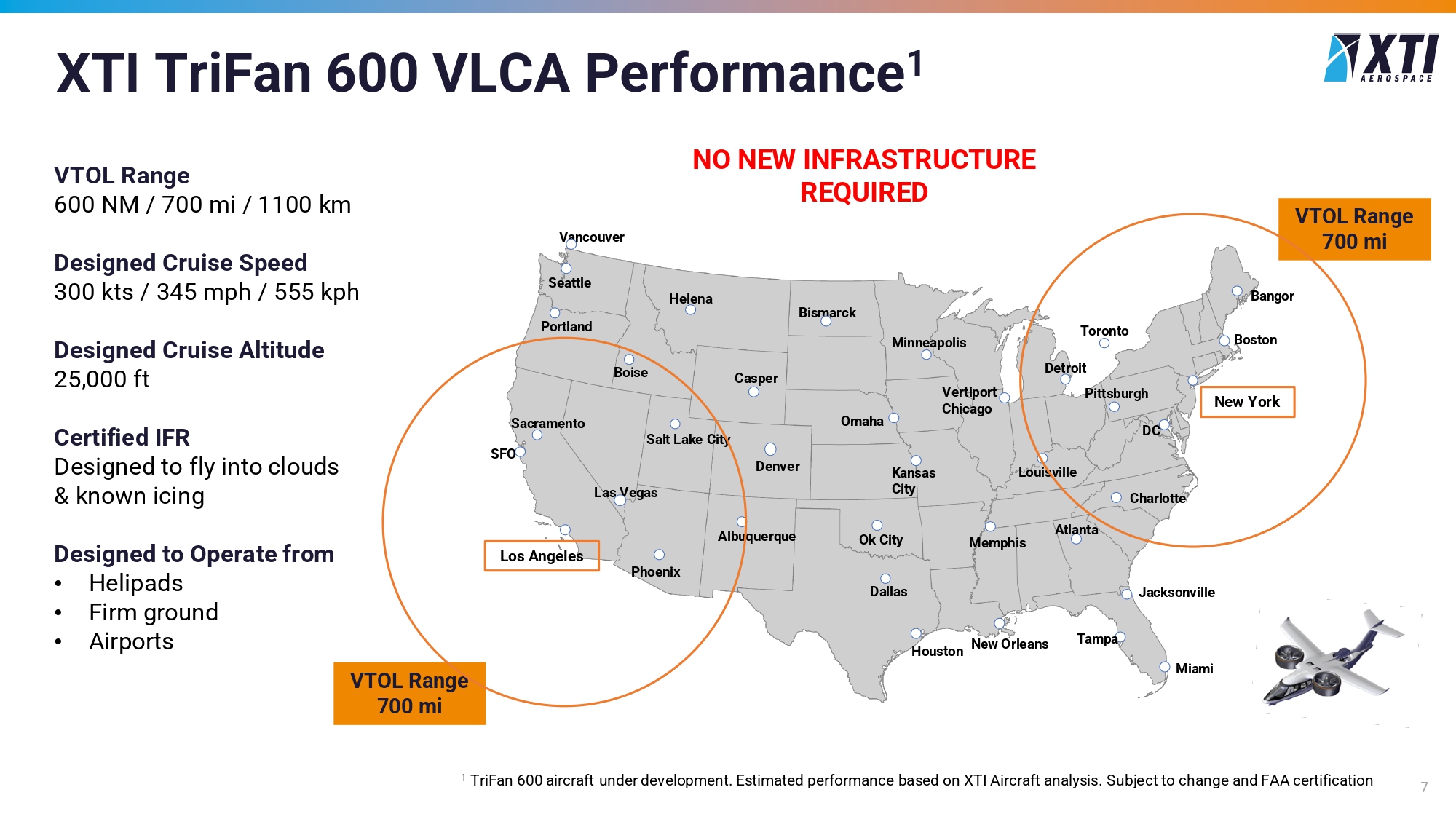 7 VľOL Ra ⭲ gc 600 NM / 700 mi / 1100 km Dcsig ⭲ cd Cíuisc Spccd «00 kts / «45 mpk / 555 kpk Dcsig ⭲ cd Cíuisc Altitudc 25,000 rt Ccítificd IÏR Kcsig ⭲ cd to rlQ i ⭲ to clo"ds & k ⭲ ow ⭲ ici ⭲ g Dcsig ⭲ cd to Opcíatc fíom • Hclipads • Iiím gío" ⭲ d • Aiípoíts XľI ľíiÏa ⭲ G00 VLCA Pcífoíma ⭲ cc 1 NO NEW INÏRASľRUCľURE REQUIRED 1 ľíiIa ⭲ 600 aiícíart " ⭲ dcí dc:clopmc ⭲ t. Estimatcd pcíroíma ⭲ cc bascd o ⭲ XľI Aiícíart a ⭲ alQsis. S"bjcct to cka ⭲ gc a ⭲ d IAA ccítiricatio ⭲ VľOL Ra ⭲ gc 700 mi VľOL Ra ⭲ gc 700 mi Hclc ⭲ a Las Vcgas Vcítipoít Ckicago Los A ⭲ gclcs Ka ⭲ sas CitQ SÏO Ok CitQ Boisc Sacíamc ⭲ to Salt Lakc CitQ Poítla ⭲ d Ba ⭲ goí Atla ⭲ ta Jackso ⭲ :illc Caspcí Bismaíck ľampa DC Louis:illc Dc ⭲ :cí Bosto ⭲ Dctíoit Pittsbuígk Omaka Pkoc ⭲ ix Albuqucíquc Dallas Va ⭲ cou:cí Ncw Yoík ľoío ⭲ to Mcmpkis Mi ⭲⭲ capolis Housto ⭲ Ncw Oílca ⭲ s Scattlc Miami Ckaílottc