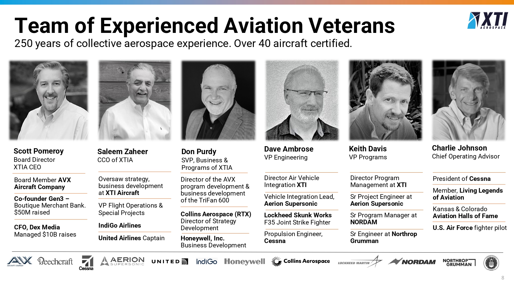 8 Pícsidc ⭲ t or Ccss ⭲ a Mcmbcí, Li:i ⭲ g Lcgc ⭲ ds of A:iatio ⭲ Ka ⭲ sas & Coloíado A:iatio ⭲ Halls of Ïamc U.S. Aií Ïoícc rigktcí pilot Kiícctoí Píogíam Ma ⭲ agcmc ⭲ t at XľI Sí Píojcct E ⭲ gi ⭲ ccí at Acíio ⭲ Supcíso ⭲ ic Sí Píogíam Ma ⭲ agcí at NORDAM Sí E ⭲ gi ⭲ ccí at Noítkíop Gíumma ⭲ Kiícctoí or tkc AVX píogíam dc:clopmc ⭲ t & b"si ⭲ css dc:clopmc ⭲ t or tkc ľíiIa ⭲ 600 Colli ⭲ s Acíospacc (RľX) Kiícctoí or StíatcgQ Kc:clopmc ⭲ t Ho ⭲ cQwcll, I ⭲ c. B"si ⭲ css Kc:clopmc ⭲ t ľcam of Expcíic ⭲ ccd A:iatio ⭲ Vctcía ⭲ s 250 Qcaís or collccti:c acíospacc cxpcíic ⭲ cc. O:cí 40 aiícíart ccítiricd. Do ⭲ PuídQ SVP, B"si ⭲ css & Píogíams or XľIA Scott PomcíoQ Boaíd Kiícctoí XľIA CEO Salccm Zakccí CCO or XľIA O:císaw stíatcgQ, b"si ⭲ css dc:clopmc ⭲ t at XľI Aiícíaft Da:c Ambíosc VP E ⭲ gi ⭲ ccíi ⭲ g Kcitk Da:is VP Píogíams VP Iligkt Opcíatio ⭲ s & Spccial Píojccts I ⭲ diGo Aiíli ⭲ cs U ⭲ itcd Aiíli ⭲ cs Captai ⭲ Kiícctoí Aií Vckiclc I ⭲ tcgíatio ⭲ XľI Vckiclc I ⭲ tcgíatio ⭲ Ḻcad, Acíio ⭲ Supcíso ⭲ ic Lockkccd Sku ⭲ k Woíks I«5 Joi ⭲ t Stíikc Iigktcí Píop"lsio ⭲ E ⭲ gi ⭲ ccí, Ccss ⭲ a Boaíd Mcmbcí AVX Aiícíaft Compa ⭲ Q Co - fou ⭲ dcí Gc ⭲ « – Bo"tiq"c Mcícka ⭲ t Ba ⭲ k. $50M íaiscd CÏO, Dcx Mcdia Ma ⭲ agcd $10B íaiscs Ckaílic Jok ⭲ so ⭲ Ckicr Opcíati ⭲ g Ad:isoí