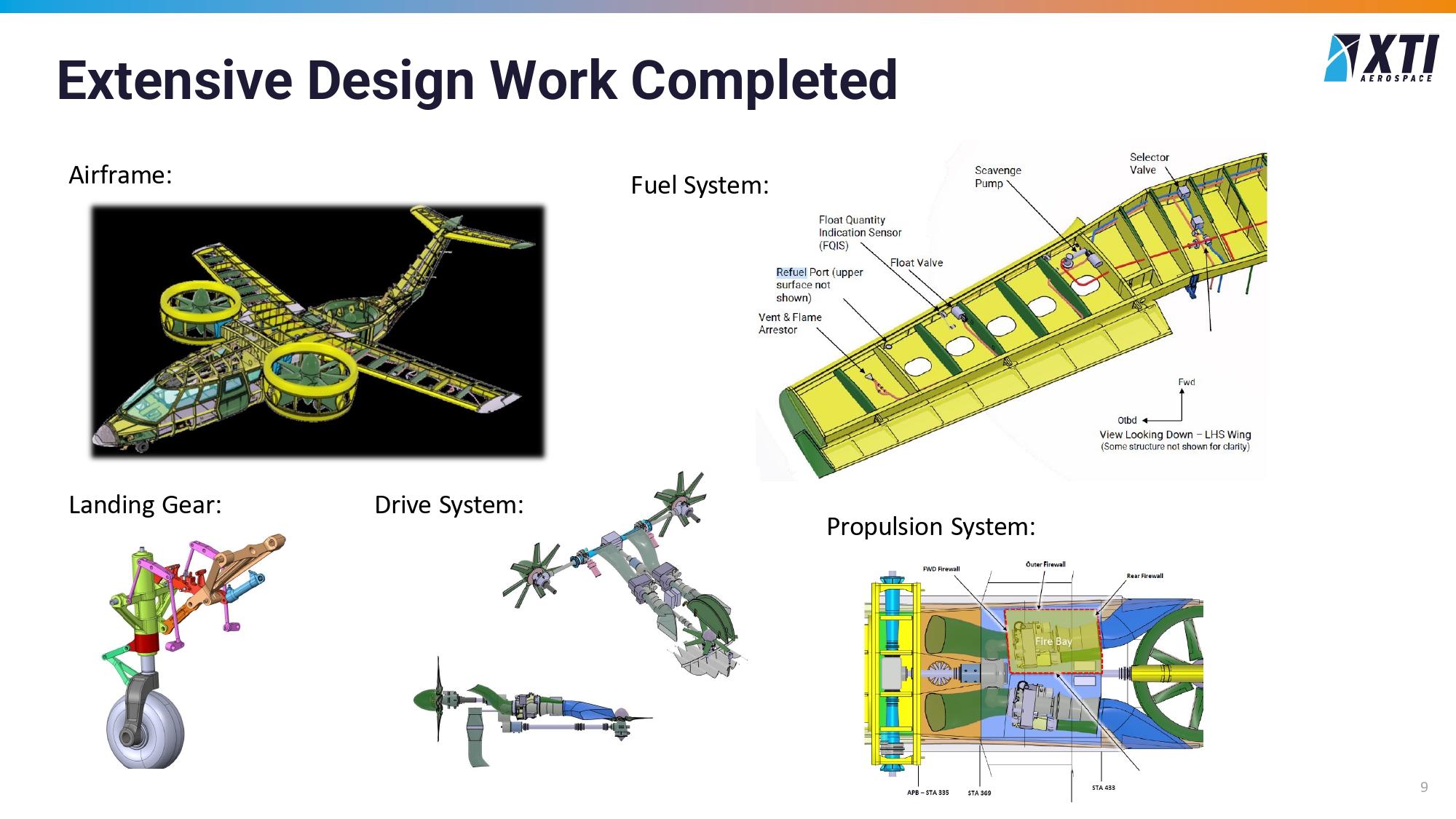9 Extc ⭲ si:c Dcsig ⭲ Woík Complctcd Airframe: Fuel System: Landing Gear: Drive System: Propulsion System: