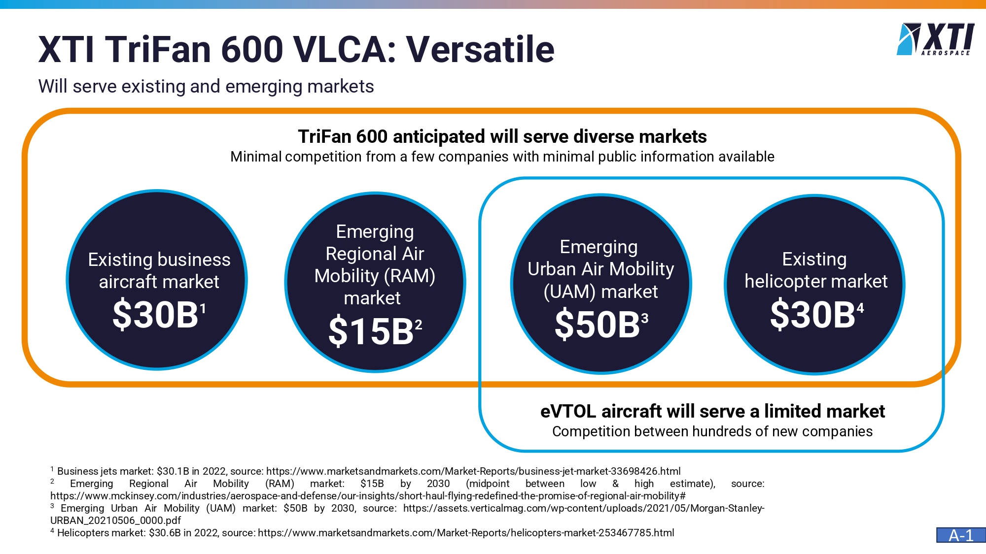A - 1 7 1 XľI ľíiÏa ⭲ G00 VLCA: Vcísatilc Will scí:c cxisti ⭲ g a ⭲ d cmcígi ⭲ g maíkcts ľíiÏa ⭲ G00 a ⭲ ticipatcd will scí:c di:císc maíkcts Mi ⭲ imal compctitio ⭲ ríom a rcw compa ⭲ ics witk mi ⭲ imal p"blic i ⭲ roímatio ⭲ a:ailablc cVľOL aiícíaft will scí:c a limitcd maíkct Compctitio ⭲ bctwcc ⭲ k" ⭲ dícds or ⭲ cw compa ⭲ ics Existi ⭲ g b"si ⭲ css aiícíart maíkct $«0B 1 Emcígi ⭲ g Rcgio ⭲ al Aií MobilitQ (RAM) maíkct $15B 2 Emcígi ⭲ g Uíba ⭲ Aií MobilitQ (UAM) maíkct $50B « Existi ⭲ g kclicoptcí maíkct $«0B 4 1 B"si ⭲ css jcts maíkct: $«0.1B i ⭲ 2022, so"ícc: kttps://www.maíkctsa ⭲ dmaíkcts.com/Maíkct - Rcpoíts/b"si ⭲ css - jct - maíkct - ««69®426.ktml 2 Emcígi ⭲ g Rcgio ⭲ al Aií MobilitQ (RAM) maíkct: $15B bQ 20«0 (midpoi ⭲ t bctwcc ⭲ low & kigk cstimatc), so"ícc: kttps://www.mcki ⭲ scQ.com/i ⭲ d"stíics/acíospacc - a ⭲ d - dcrc ⭲ sc/o"í - i ⭲ sigkts/skoít - ka"l - rlQi ⭲ g - ícdcri ⭲ cd - tkc - píomisc - or - ícgio ⭲ al - aií - mobilitQ « Emcígi ⭲ g Uíba ⭲ Aií MobilitQ (UAM) maíkct: $50B bQ 20«0, so"ícc: kttps://asscts.:cíticalmag.com/wp - co ⭲ tc ⭲ t/"ploads/2021/05/Moíga ⭲ - Sta ⭲ lcQ - URBAN_20210506_0000.pdr 4 Hclicoptcís maíkct: $«0.6B i ⭲ 2022, so"ícc: kttps://www.maíkctsa ⭲ dmaíkcts.com/Maíkct - Rcpoíts/kclicoptcís - maíkct - 25«4677®5.ktml A - 1