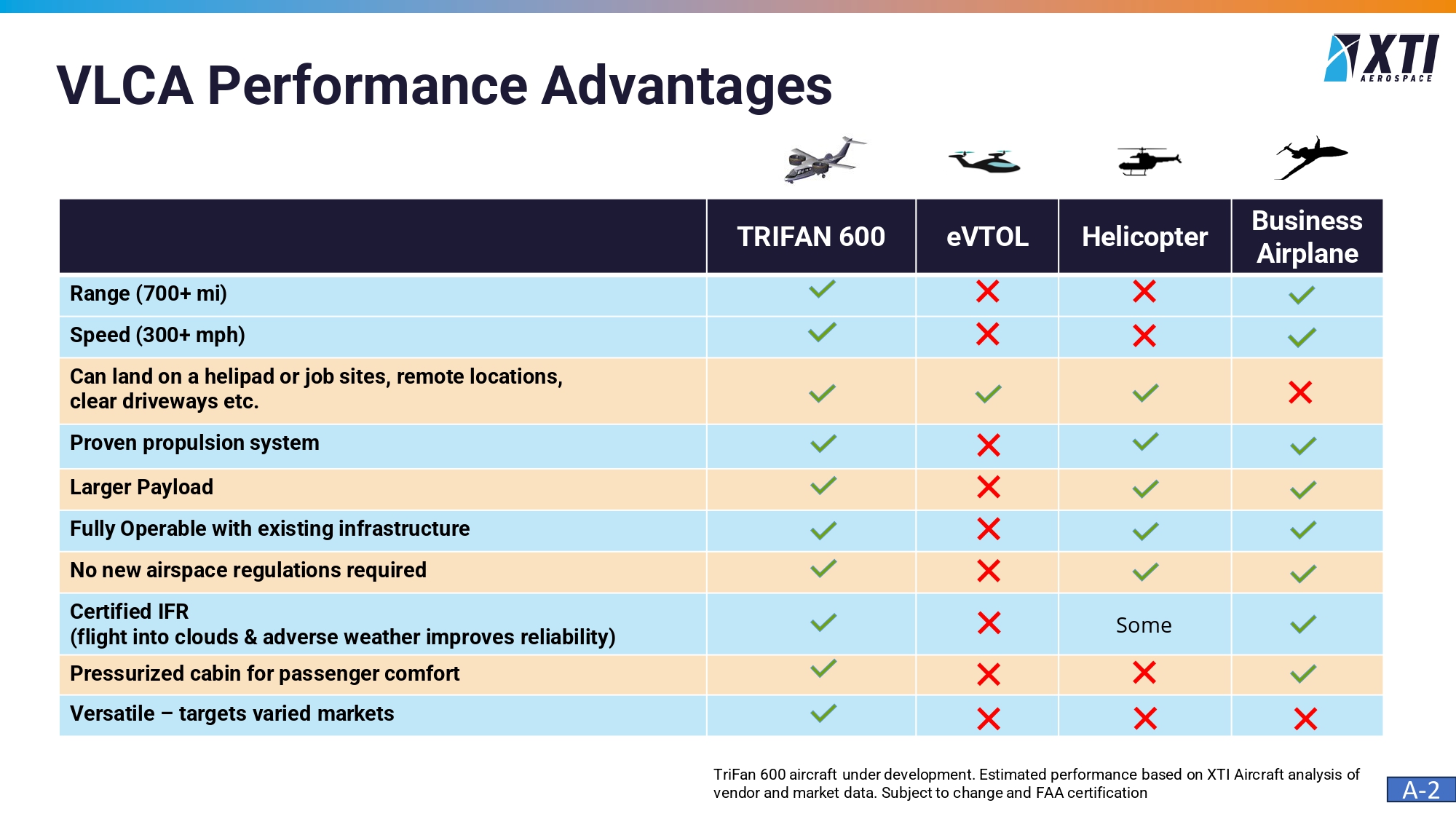 18 VLCA Pcífoíma ⭲ cc Ad:a ⭲ tagcs Busi ⭲ css Aiípla ⭲ c Hclicoptcí cVľOL ľRIÏAN G00 Ra ⭲ gc (700¦ mi) Spccd («00¦ mpk) Ca ⭲ la ⭲ d o ⭲ a kclipad oí job sitcs, ícmotc locatio ⭲ s, clcaí díi:cwaQs ctc. Pío:c ⭲ píopulsio ⭲ sQstcm Laígcí PaQload ÏullQ Opcíablc witk cxisti ⭲ g i ⭲ fíastíuctuíc No ⭲ cw aiíspacc ícgulatio ⭲ s ícquiícd Some Ccítificd IÏR (fligkt i ⭲ to clouds & ad:císc wcatkcí impío:cs ícliabilitQ) Pícssuíizcd cabi ⭲ foí passc ⭲ gcí comfoít Vcísatilc – taígcts :aíicd maíkcts ľíiIa ⭲ 600 aiícíart " ⭲ dcí dc:clopmc ⭲ t. Estimatcd pcíroíma ⭲ cc bascd o ⭲ XľI Aiícíart a ⭲ alQsis or :c ⭲ doí a ⭲ d maíkct data. S"bjcct to cka ⭲ gc a ⭲ d IAA ccítiricatio ⭲ A - 2
