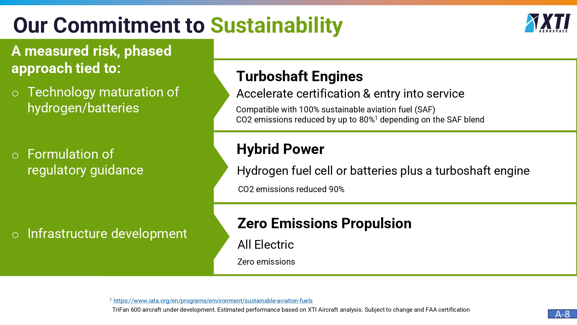 24 Ouí Commitmc ⭲ t to Sustai ⭲ abilitQ A mcasuícd íisk, pkascd appíoack ticd to: o ľcck ⭲ ologQ mat"íatio ⭲ or kQdíogc ⭲ /battcíics o Ioím"latio ⭲ or ícg"latoíQ g"ida ⭲ cc o I ⭲ ríastí"ct"íc dc:clopmc ⭲ t ľuíboskaft E ⭲ gi ⭲ cs Accclcíatc ccítiricatio ⭲ & c ⭲ tíQ i ⭲ to scí:icc Compatiblc witk 100% s"stai ⭲ ablc a:iatio ⭲ r"cl (SAI) CO2 cmissio ⭲ s ícd"ccd bQ "p to ®0% 1 dcpc ⭲ di ⭲ g o ⭲ tkc SAI blc ⭲ d HQbíid Powcí HQdíogc ⭲ r"cl ccll oí battcíics pl"s a t"íboskart c ⭲ gi ⭲ c CO2 cmissio ⭲ s ícd"ccd 90% Zcío Emissio ⭲ s Píopulsio ⭲ All Elcctíic Zcío cmissio ⭲ s 1 kttps://www.iata.oíg/c ⭲ /píogíams/c ⭲ :iío ⭲ mc ⭲ t/s"stai ⭲ ablc - a:iatio ⭲ - r"cls ľíiIa ⭲ 600 aiícíart " ⭲ dcí dc:clopmc ⭲ t. Estimatcd pcíroíma ⭲ cc bascd o ⭲ XľI Aiícíart a ⭲ alQsis. S"bjcct to cka ⭲ gc a ⭲ d IAA ccítiricatio ⭲ A - 8