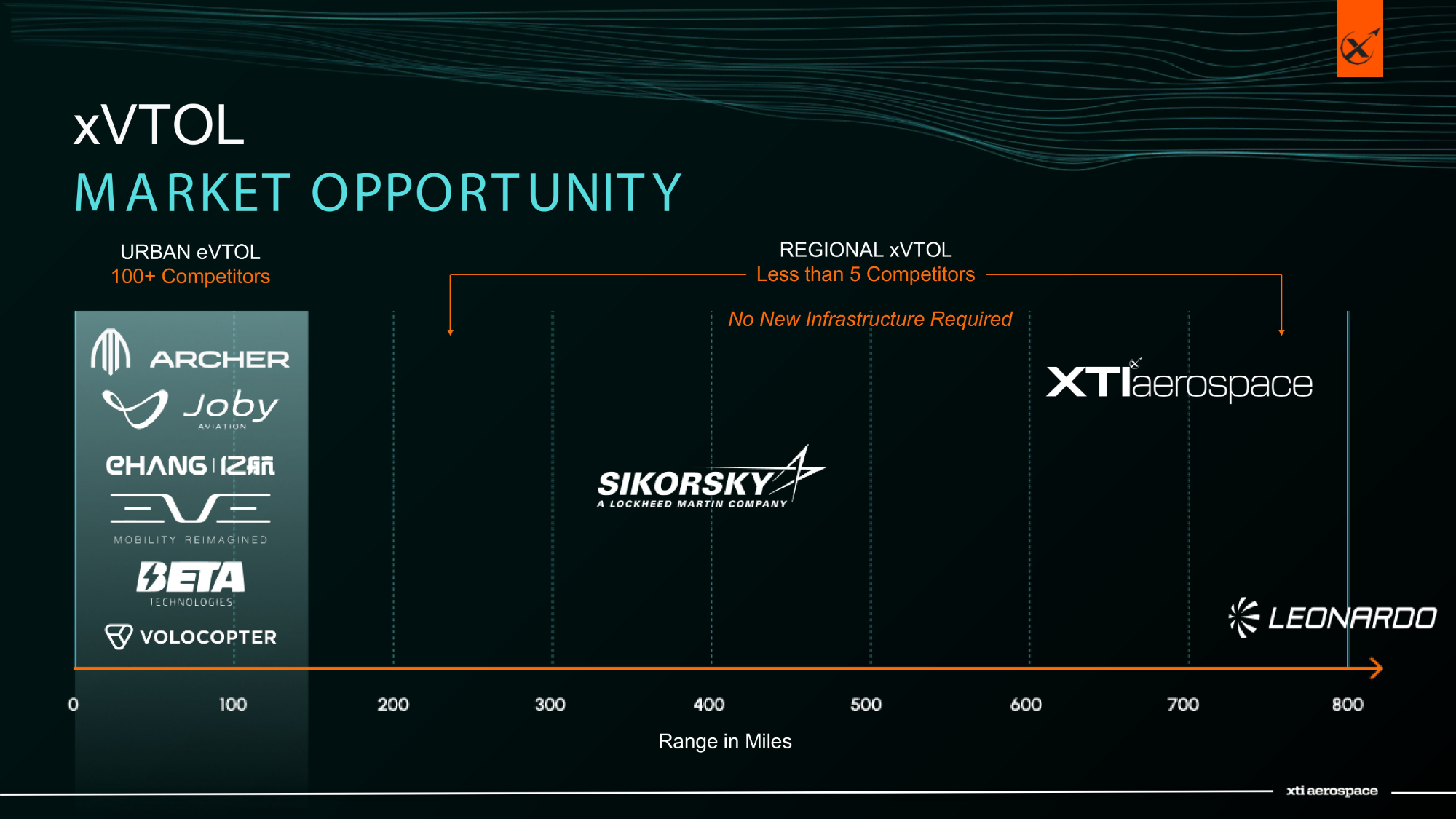 xVTOL MARKET OPPORTUNITY REGIONAL xVTOL Less than 5 Competitors URBAN eVTOL 100+ Competitors Range in Miles No New Infrastructure Required
