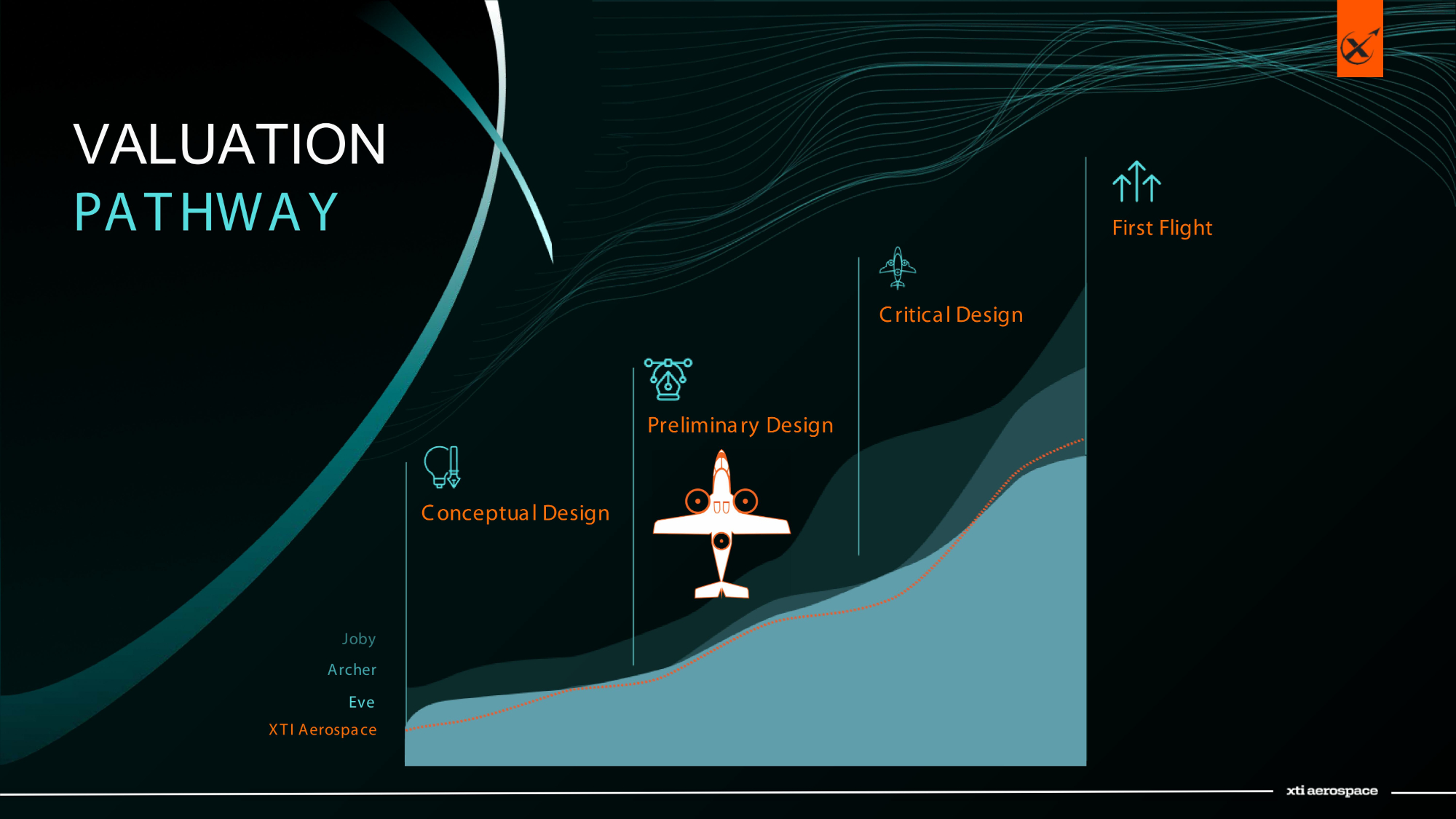 VALUATION PATHWAY Conceptual Design Preliminary Design Critical Design First Flight Joby Archer XTI Aerospace Eve