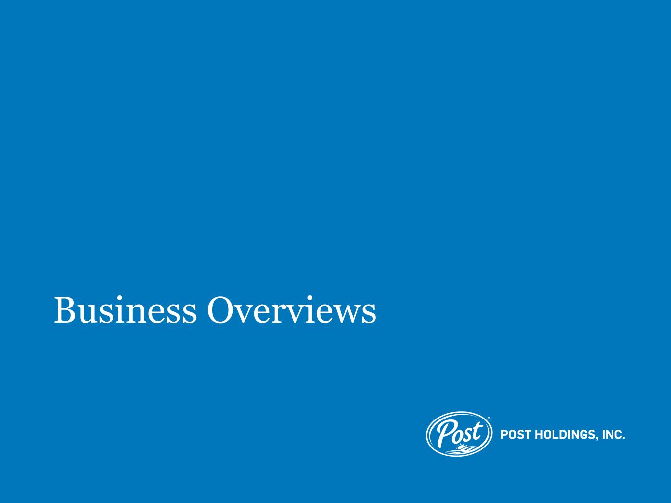 Cautionary Statement Regarding Forward-Looking Statements Certain matters discussed in this presentation and any discussions with potential investors are forward-looking statements within the meaning of the Private Securities Litigation Reform Act of 1995. These forward-looking statements are made based on known events and circumstances at the time of release, and as such, are subject to uncertainty and changes in circumstances. These forward-looking statements include, among others, statements regarding Post’s prospective performance and opportunities, including Post’s expected synergies and benefits from its acquisition of a portion of The J.M. Smucker Company’s (“Smucker”) pet food business (“Pet Food”), Post’s Adjusted EBITDA outlook for fiscal year 2023, Post’s forecasted Adjusted EBITDA from the Pet Food acquisition, Post’s capital expenditure outlook for fiscal year 2023, Post’s free cash flow illustrative calculation, Post’s illustrative value in future fiscal years, Post’s illustrative net debt reduction, Post’s expected rates of Adjusted EBITDA growth, Post’s pro forma net leverage, Post’s illustrative multiple, Post’s estimated increase in cash interest, the anticipated normalization of Post’s Foodservice business, anticipated volume growth rates in Post’s Refrigerated Retail business and statements regarding Post Holdings Partnering Corporation (“PHPC”). These forward-looking statements are sometimes identified from the use of forward-looking words such as “believe,” “should,” “could,” “potential,” “continue,” “expect,” “project,” “estimate,” “predict,” “anticipate,” “aim,” “intend,” “plan,” “forecast,” “target,” “is likely,” “will,” “can,” “may” or “would” or the negative of these terms or similar expressions, and include all statements regarding future performance, earnings projections, events or developments. There are a number of risks and uncertainties that could cause actual results to differ materially from the forward-looking statements made herein. THESE RISKS AND UNCERTAINTIES INCLUDE, BUT ARE NOT LIMITED TO, THE FOLLOWING: • Post’s ability to successfully integrate the Pet Food operations, deliver on the expected financial contribution from the Pet Food acquisition and maintain relationships with Pet Food employees, customers and suppliers, while maintaining focus on Post’s pre-acquisition businesses; • Post’s ability to obtain the expected cost savings and synergies from the Pet Food acquisition; • Post’s and Smucker’s ability to comply with certain ancillary agreements associated with the Pet Food acquisition, including transition services agreements, co- manufacturing agreements and a registration rights agreement; • significant volatility in the cost or availability of inputs to Post’s businesses (including raw materials, energy and other supplies and freight); • Post’s ability to increase its prices to offset cost increases and the potential for such price increases to impact demand for Post’s products; • disruptions or inefficiencies in Post’s supply chain, including as a result of inflation, labor shortages, insufficient product or raw material availability, Post’s reliance on third parties for the supply of materials for or the manufacture of many of Post’s products, limited freight carrier availability, public health crises (including the COVID-19 pandemic), climatic events, agricultural diseases and pests, fires and evacuations related thereto and other events beyond Post’s control; • changes in economic conditions, the occurrence of a recession, instability in financial institutions, disruptions in the U.S. and global capital and credit markets, changes in interest rates and fluctuations in foreign currency exchange rates; • Post’s high leverage, Post’s ability to obtain additional financing (including both secured and unsecured debt), Post’s ability to service its outstanding debt (including covenants that restrict the operation of Post’s businesses) and a downgrade or potential downgrade in Post’s credit ratings; • Post’s ability to hire and retain talented personnel, increases in labor-related costs, the ability of Post’s employees to safely perform their jobs, including the potential for physical injuries or illness, employee absenteeism, labor strikes, work stoppages and unionization efforts; • Post’s ability to continue to compete in its product categories and Post’s ability to retain its market position and favorable perceptions of its brands; • the impacts of public health crises (including the COVID-19 pandemic), such as negative impacts on demand for Post’s foodservice and on-the-go products, Post’s ability to manufacture and deliver its products, workforce availability, the health and safety of Post’s employees, operating costs, the global economy and capital markets and Post’s operations generally; • Post’s ability to anticipate and respond to changes in consumer and customer preferences and behaviors and introduce new products; • allegations that Post’s products cause injury or illness, product recalls and withdrawals and product liability claims and other related litigation; 3