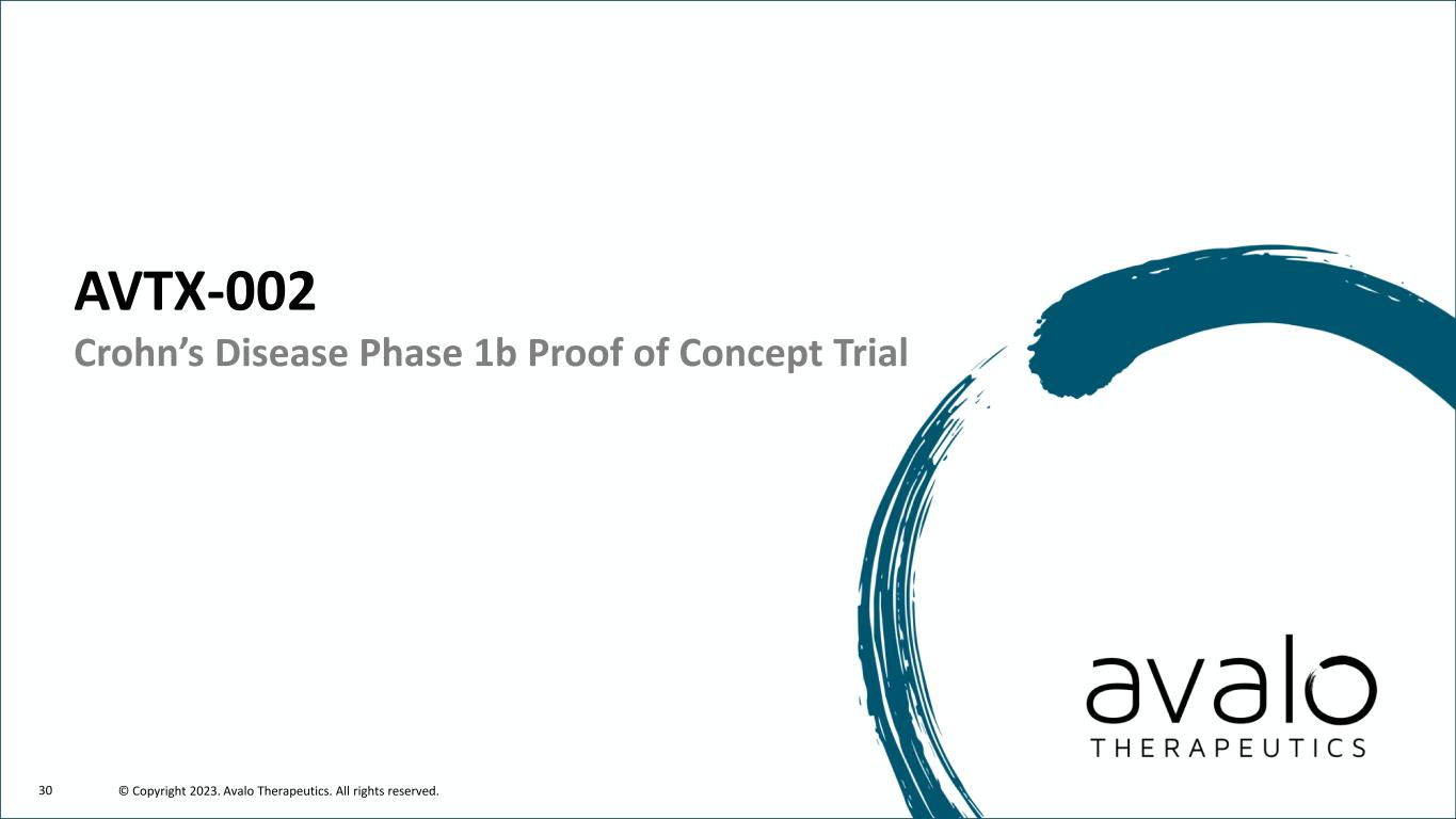 30 © Copyright 2023. Avalo Therapeutics. All rights reserved. AVTX-002 Crohn’s Disease Phase 1b Proof of Concept Trial