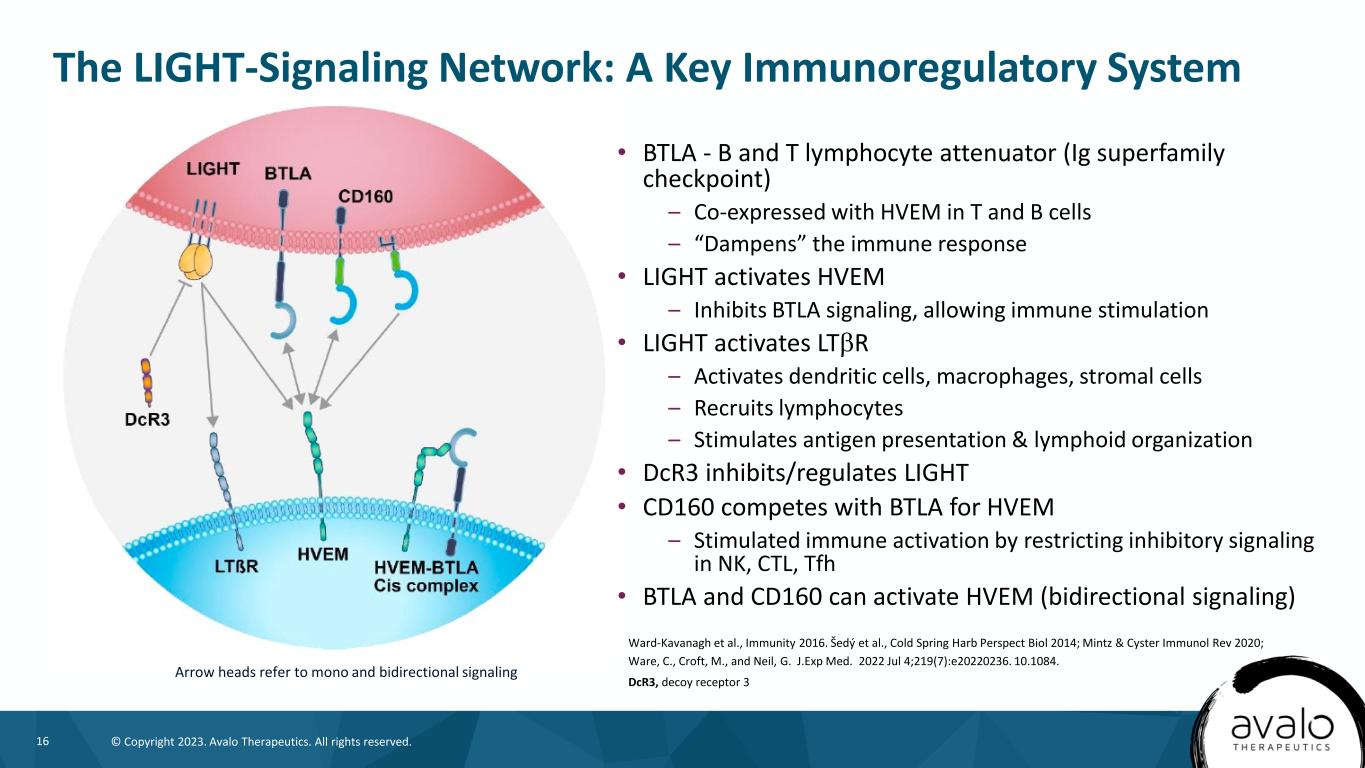 15 © Copyright 2023. Avalo Therapeutics. All rights reserved. LIGHT-Signaling Network & AVTX-008 BTLA agonist fusion protein