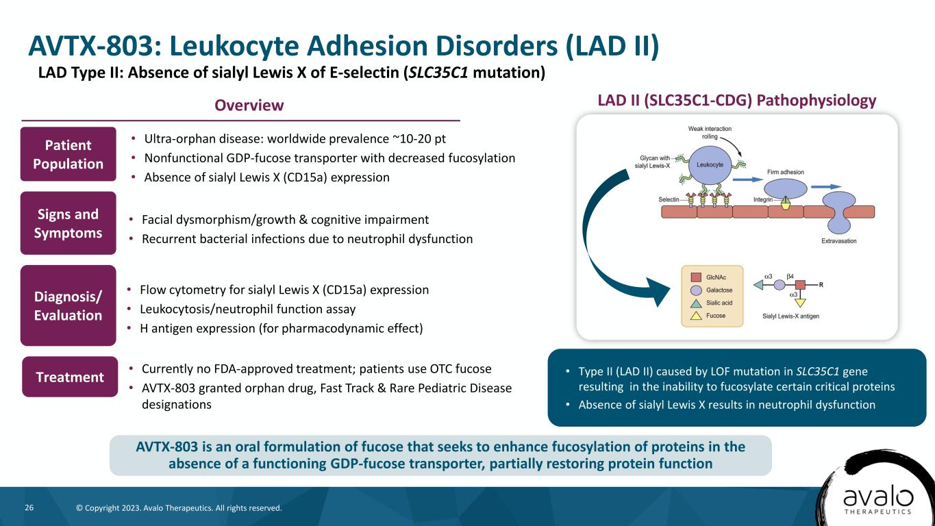 25 © Copyright 2023. Avalo Therapeutics. All rights reserved. AVTX-803 Leukocyte Adhesion Deficiency Type II (LAD II, also known as SLC35C1-CDG)