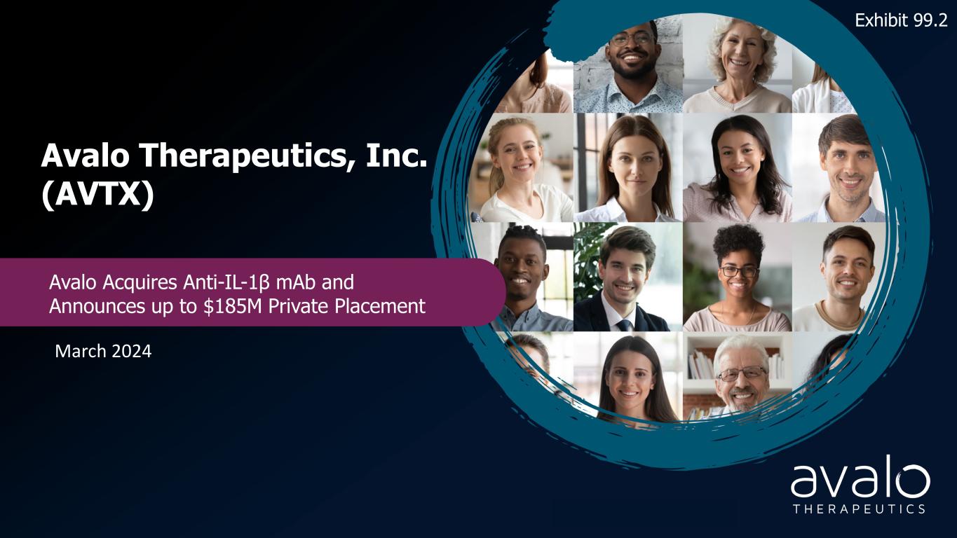 1 Avalo Therapeutics, Inc. (AVTX) Avalo Acquires Anti-IL-1β mAb and Announces up to $185M Private Placement March 2024 Exhibit 99.2