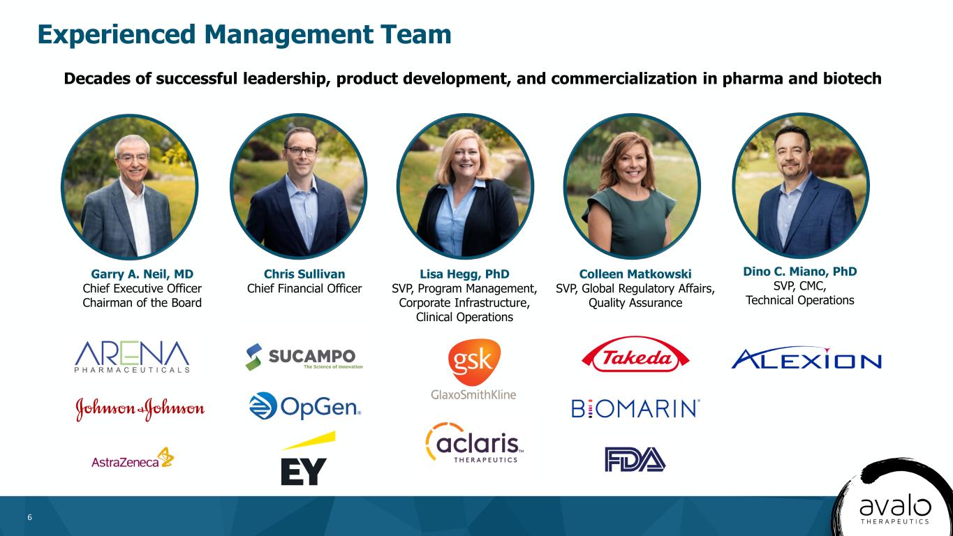 5 • Potential for a Best-in-Disease Profile in HS – High potency and favorable half-life may allow for improved efficacy and convenient dosing – Potential in other autoimmune diseases • Key Clinical Evidence Supporting IL-1β in HS – In a large, well controlled Phase 2 trial (NCT05139602), lutikizumab validates IL-1β targeting in HS. Efficacy was comparable with other HS therapies despite a more severe patient population1 – Clinical evidence suggests anti-IL-1α therapy is not effective in HS2,3 – MAS825 (IL-1β/IL-18 bispecific) showed positive results in a Phase 2 randomized controlled study (NCT03827798)4 – Monospecific IL-1β inhibition may outperform bispecifics that address targets that are unvalidated (IL-18) or known not to contribute to efficacy (IL-1α) – We believe AVTX-009 has a high probability of success in HS • HS Anticipated to Become Multi-Billion Dollar Market • HS Topline Results Expected in 2026 • Expected Cash Runway into 2027 Executive Summary and Development Timeline 1. Kimball AB, et al. Presented at: American Academy of Dermatology; March 8-12, 2024; San Diego, CA 2. ClinicalTrials.gov identifier: NCT04988308. Updated November 13, 2023. Accessed March 24, 2024. https://clinicaltrials.gov/search?term=NCT04988308 NCT04019041 3. ClinicalTrials.gov identifier: NCT04019041. Updated July 27, 2023. Accessed March 24, 2024. https://clinicaltrials.gov/search?term=NCT04988308 :// 4. Kimball AB, et al. Presented at: American Academy of Dermatology; March 8-12, 2024; San Diego, CA