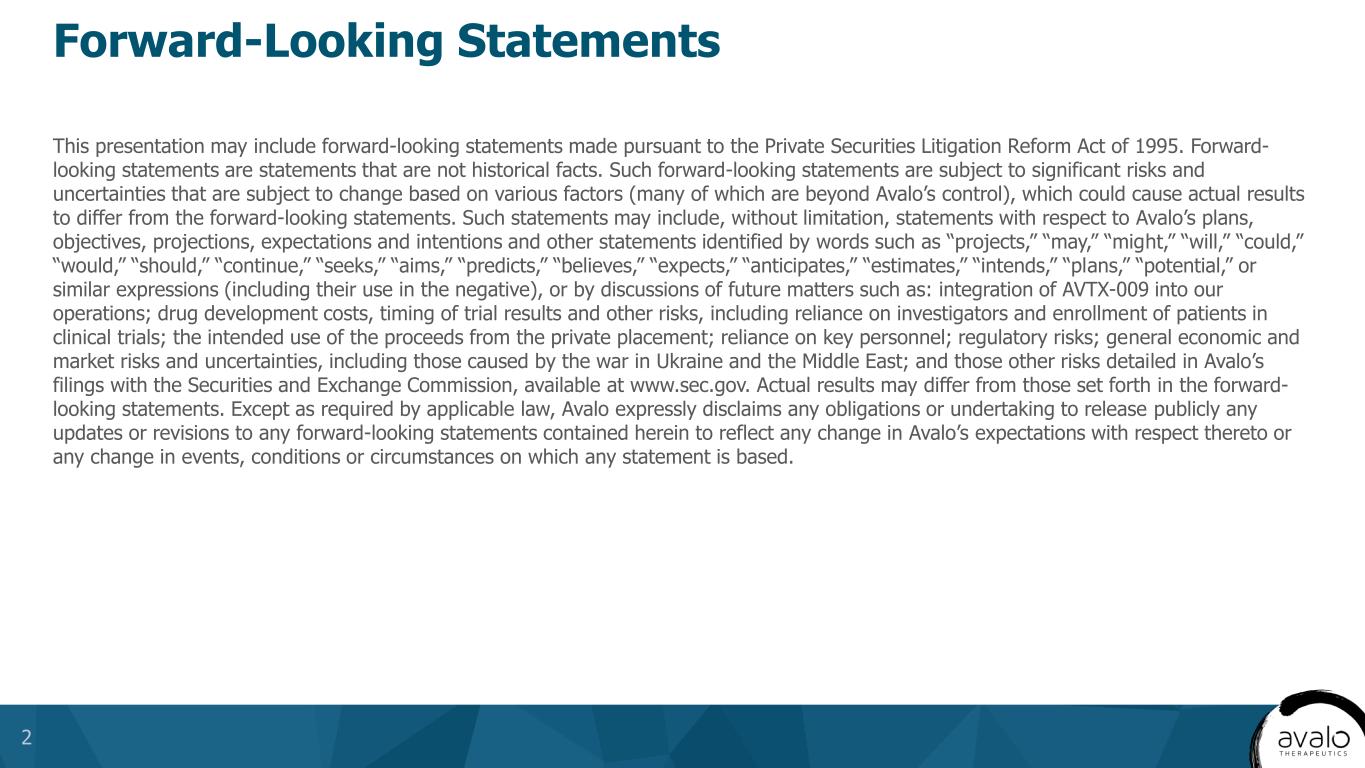 October 2024 Corporate Presentation Avalo Therapeutics, Inc. (AVTX) EXHIBIT 99.2