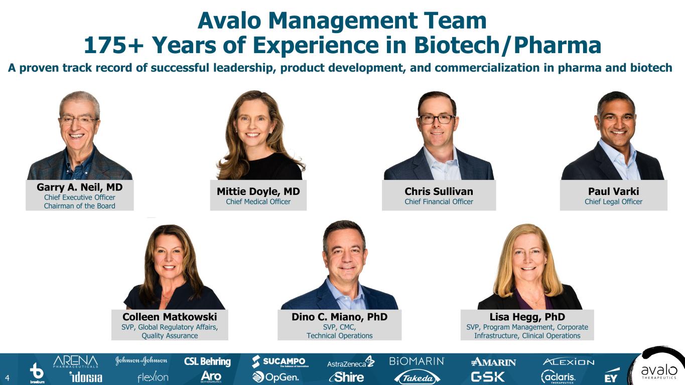 Forward-Looking Statements This presentation may include forward-looking statements made pursuant to the Private Securities Litigation Reform Act of 1995. Forward- looking statements are statements that are not historical facts. Such forward-looking statements are subject to significant risks and uncertainties that are subject to change based on various factors (many of which are beyond Avalo’s control), which could cause actual results to differ from the forward-looking statements. Such statements may include, without limitation, statements with respect to Avalo’s plans, objectives, projections, expectations and intentions and other statements identified by words such as “projects,” “may,” “might,” “will,” “could,” “would,” “should,” “continue,” “seeks,” “aims,” “predicts,” “believes,” “expects,” “anticipates,” “estimates,” “intends,” “plans,” “potential,” or similar expressions (including their use in the negative), or by discussions of future matters such as: integration of AVTX-009 into our operations; drug development costs, timing of trial results and other risks, including reliance on investigators and enrollment of patients in clinical trials; the intended use of the proceeds from the private placement; reliance on key personnel; regulatory risks; general economic and market risks and uncertainties, including those caused by the war in Ukraine and the Middle East; and those other risks detailed in Avalo’s filings with the Securities and Exchange Commission, available at www.sec.gov. Actual results may differ from those set forth in the forward- looking statements. Except as required by applicable law, Avalo expressly disclaims any obligations or undertaking to release publicly any updates or revisions to any forward-looking statements contained herein to reflect any change in Avalo’s expectations with respect thereto or any change in events, conditions or circumstances on which any statement is based. 2