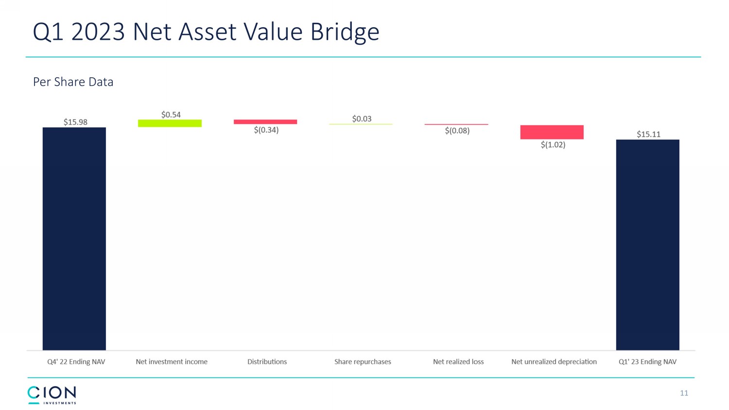 11 Q1 2023 Net Asset Value Bridge Per Share Data * *