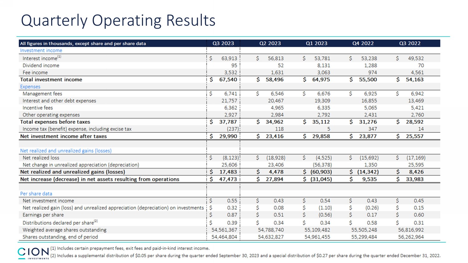 CION Investment Corporation Third Quarter 2023 Earnings Presentation