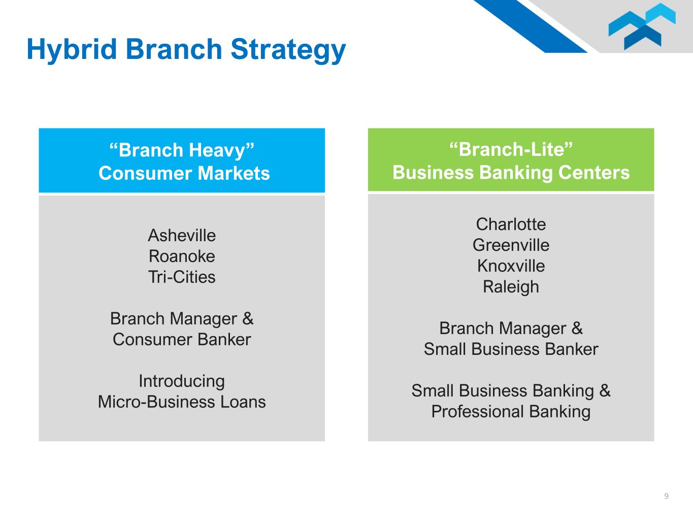 9 “Branch Heavy” Consumer Markets Asheville Roanoke Tri-Cities Branch Manager & Consumer Banker Introducing Micro-Business Loans Hybrid Branch Strategy “Branch-Lite” Business Banking Centers Charlotte Greenville Knoxville Raleigh Branch Manager & Small Business Banker Small Business Banking & Professional Banking