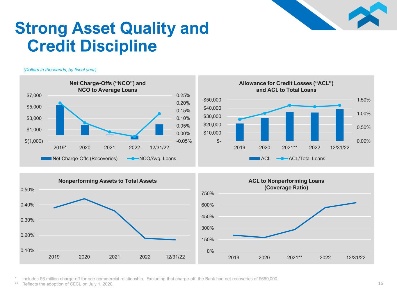 15 • Core banking system (2020 conversion) intentionally selected for its open architecture to quickly integrate future FinTech partnerships • Integrated 2nd FinTech partner in March 2022 focused on small business lending • Integrated 3rd FinTech partner in June 2022 focused on consumer lending • Integrated Blend mortgage platform in September 2021 • Offers an advanced digital option, allowing customers to complete applications on any mobile device • Immediate efficiencies in documentation gathering and verification processes • Continuing to invest in technology to enhance the digital experience, including the application of the knowledge gained from our collaboration with the Fintech partners referenced above Digital Customer Experience (Continued)