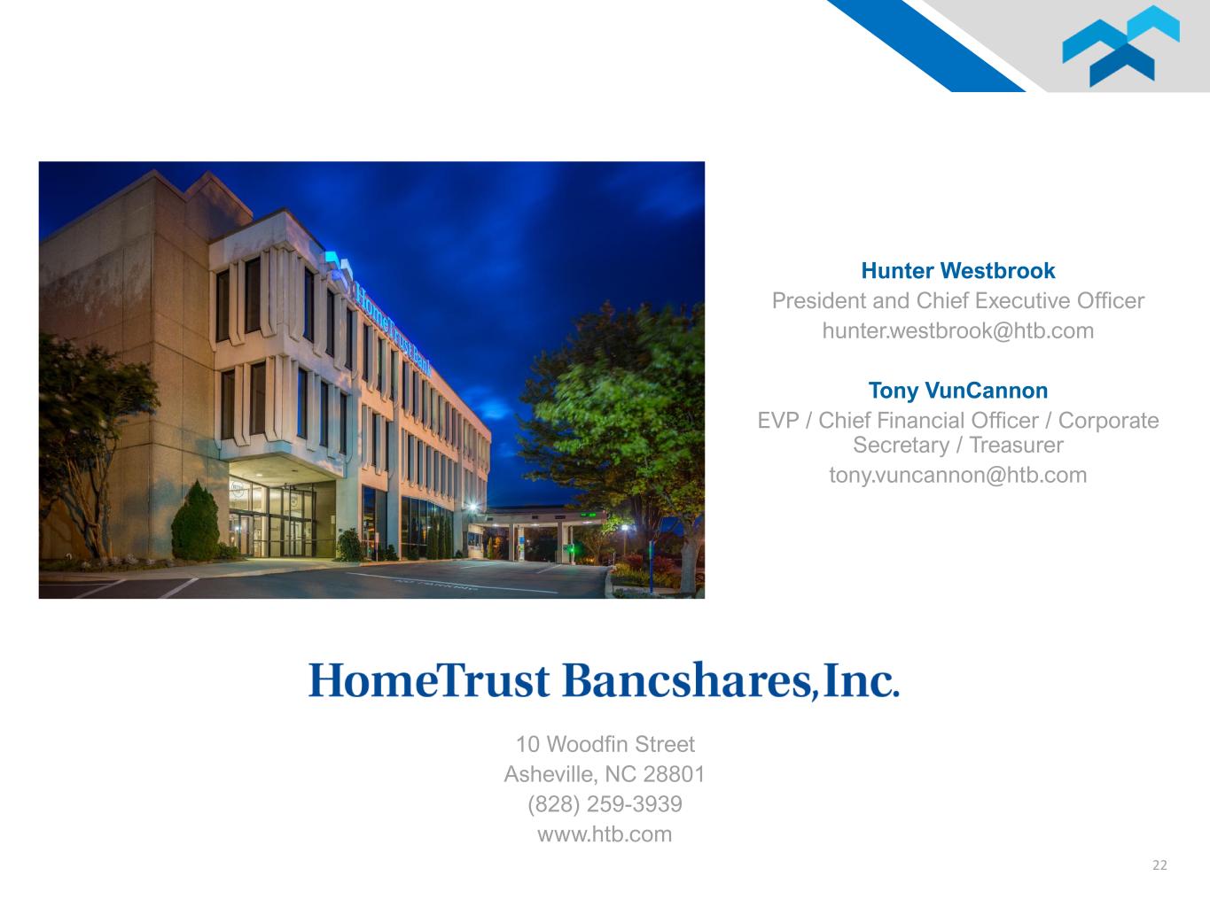 Hunter Westbrook President and Chief Executive Officer hunter.westbrook@htb.com Tony VunCannon EVP / Chief Financial Officer / Corporate Secretary / Treasurer tony.vuncannon@htb.com 10 Woodfin Street Asheville, NC 28801 (828) 259-3939 www.htb.com 22