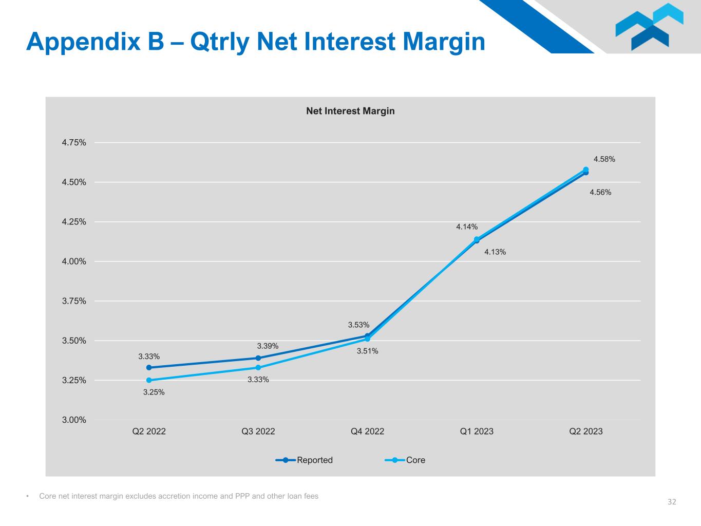 32 3.33% 3.39% 3.53% 4.13% 4.56% 3.25% 3.33% 3.51% 4.14% 4.58% 3.00% 3.25% 3.50% 3.75% 4.00% 4.25% 4.50% 4.75% Q2 2022 Q3 2022 Q4 2022 Q1 2023 Q2 2023 Net Interest Margin Reported Core • Core net interest margin excludes accretion income and PPP and other loan fees Appendix B – Qtrly Net Interest Margin