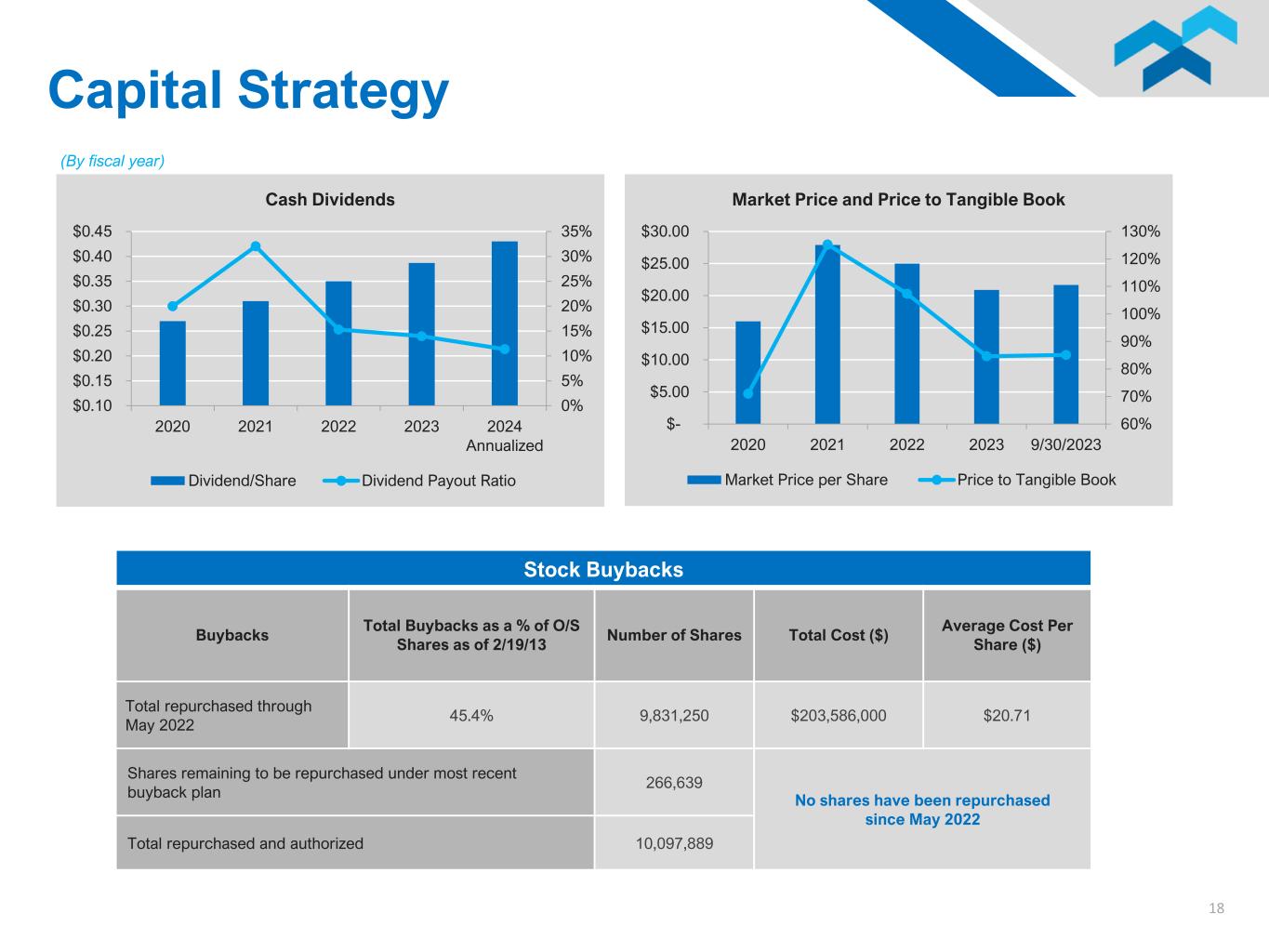 17 0% 2% 4% 6% 8% 10% 12% 14% 2020 2021 2022 2023 9/30/2023 Common Equity Tier I Capital (to Risk-Weighted Assets) CET I Capital Minimum to Be Well Capitalized (Dollars in thousands, by fiscal year) 0% 2% 4% 6% 8% 10% 12% 14% 2020 2021 2022 2023 9/30/2023 Tier I Capital (to Total Adjusted Assets) Tier I Capital Minimum to Be Well Capitalized 0% 2% 4% 6% 8% 10% 12% 14% 2020 2021 2022 2023 9/30/2023 Tier I Capital (to Risk-Weighted Assets) Tier I Capital Minimum to Be Well Capitalized 0% 2% 4% 6% 8% 10% 12% 14% 2020 2021 2022 2023 9/30/2023 Total Risk-Based Capital (to Risk-Weighted Assets) Risk Based Capital Minimum to Be Well Capitalized Strong Capital Position to Support Continued Growth