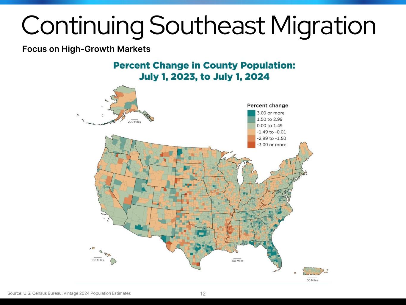Continuing Southeast Migration Source: U.S. Census Bureau, Vintage 2024 Population Estimates 12 Focus on High-Growth Markets