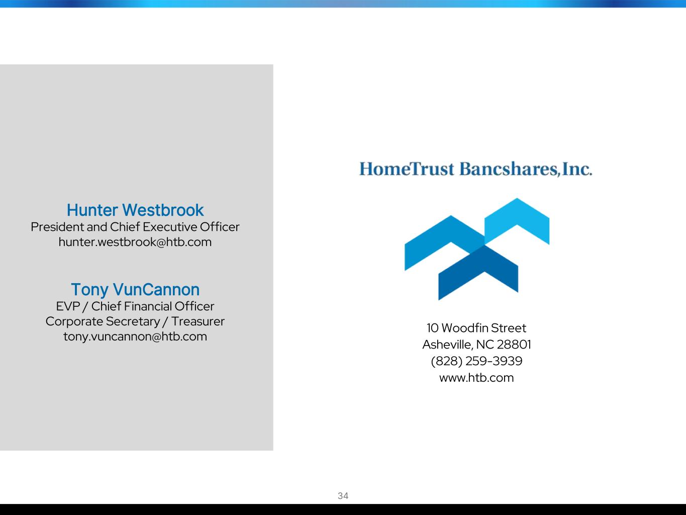 Hunter Westbrook President and Chief Executive Officer hunter.westbrook@htb.com Tony VunCannon EVP / Chief Financial Officer Corporate Secretary / Treasurer tony.vuncannon@htb.com 10 Woodfin Street Asheville, NC 28801 (828) 259-3939 www.htb.com 34