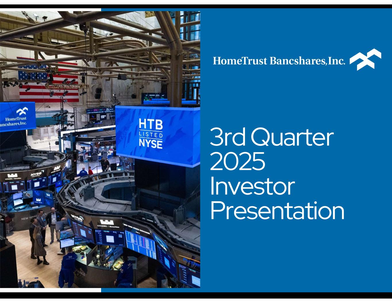 Appendix – Non-GAAP Recon Set forth is a reconciliation to GAAP of tangible book value, tangible book value per share, and price to tangible book value: (Dollars in thousands) 9/30/2025 6/30/2025 3/31/2025 12/31/2024 9/30/2024 Total stockholder's equity 595,833$ 579,274$ 565,449$ 551,758$ 540,004$ Less: goodw ill, core deposit intangibles, net of taxes (38,160) (38,477) (38,793) (39,189) (39,626) Tangible book value 557,673$ 540,797$ 526,656$ 512,569$ 500,378$ Common shares outstanding 17,520,425 17,492,143 17,552,626 17,527,709 17,514,922 Book value per share 34.01$ 33.12$ 32.21$ 31.48$ 30.83$ Tangible book value per share 31.83$ 30.92$ 30.00$ 29.24$ 28.57$ HomeTrust Bancshares, Inc. share price 40.94$ 37.41$ 34.28$ 33.68$ 34.08$ Price to tangible book value 128.6% 121.0% 114.2% 115.2% 119.3% As of (Dollars in thousands) 6/30/2024 3/31/2024 12/31/2023 9/30/2023 Total stockholder's equity 523,628$ 513,173$ 499,893$ 484,411$ Less: goodw ill, core deposit intangibles, net of taxes (40,063) (40,500) (41,086) (41,748) Tangible book value 483,565$ 472,673$ 458,807$ 442,663$ Common shares outstanding 17,437,326 17,444,787 17,387,069 17,380,307 Book value per share 30.03$ 29.42$ 28.75$ 27.87$ Tangible book value per share 27.73$ 27.10$ 26.39$ 25.47$ HomeTrust Bancshares, Inc. share price 30.03$ 27.34$ 26.92$ 21.67$ Price to tangible book value 108.3% 100.9% 102.0% 85.1% As of (Continued) 28