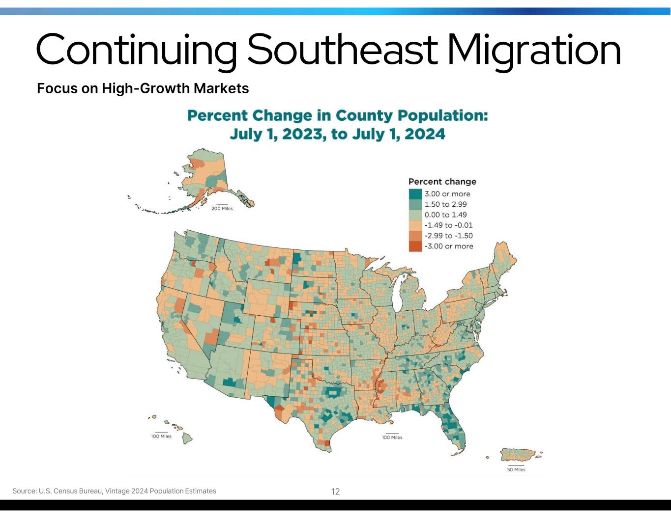 Continuing Southeast Migration Source: U.S. Census Bureau, Vintage 2024 Population Estimates 12 Focus on High-Growth Markets