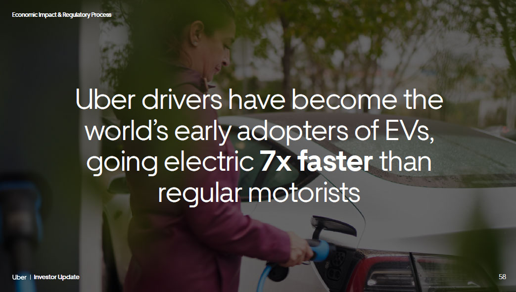 58 Investor Update Economic Impact & Regulatory Process Uber drivers have become the world’s early adopters of EVs, going electric 7x faster than regular motorists 58 Investor Update Economic Impact & Regulatory Process