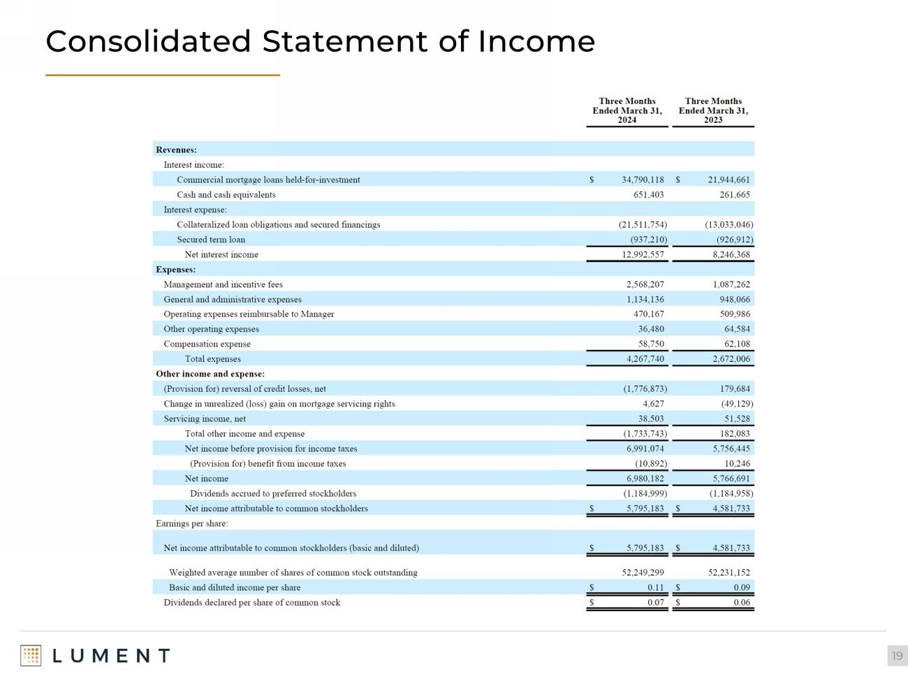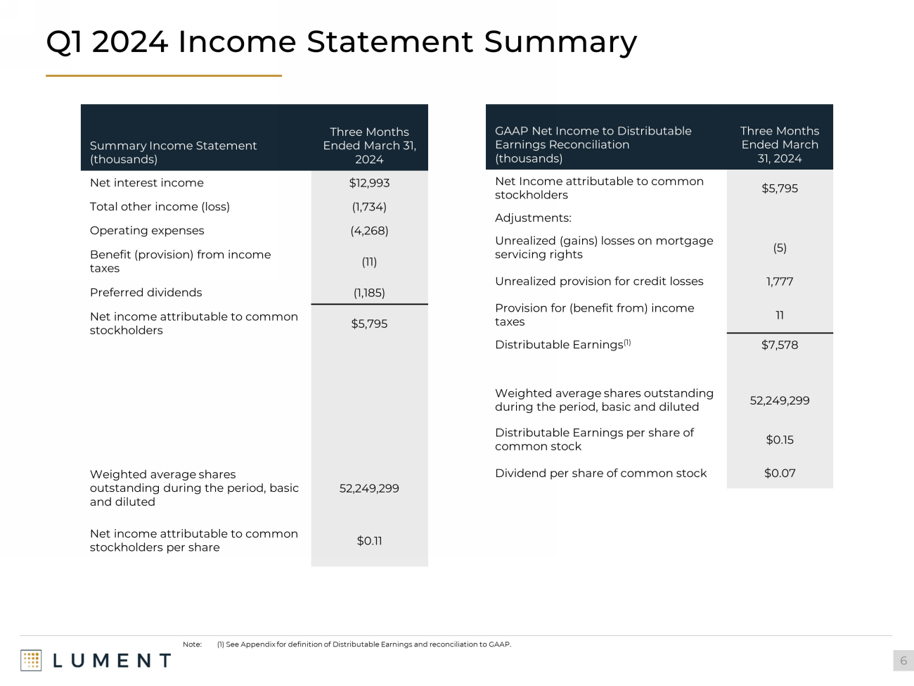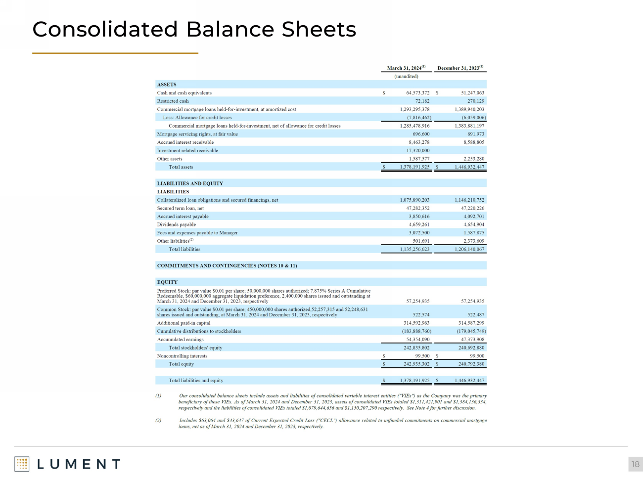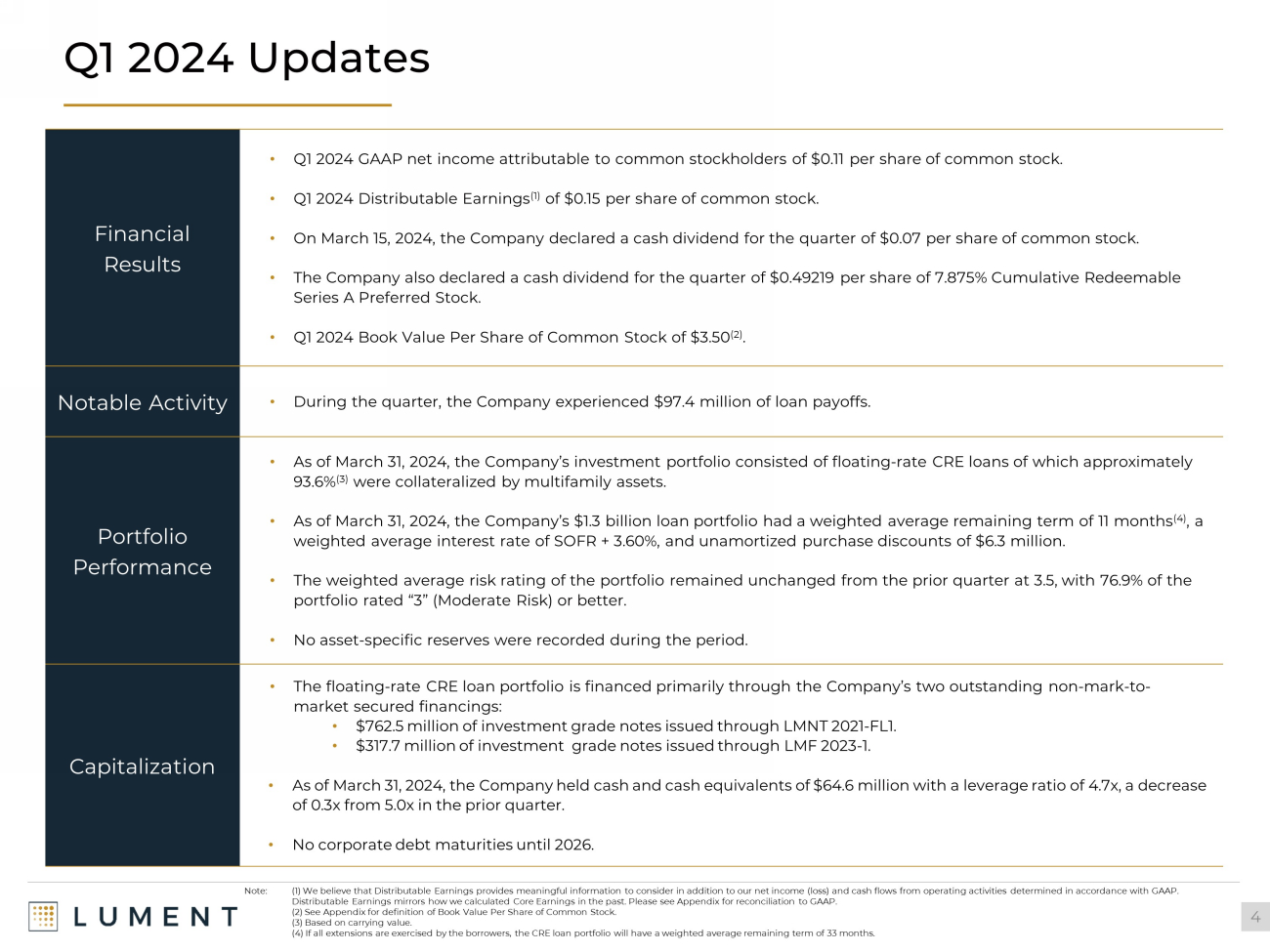 May 2024 Lument Finance Trust Q1 2024 Earnings Supplemental