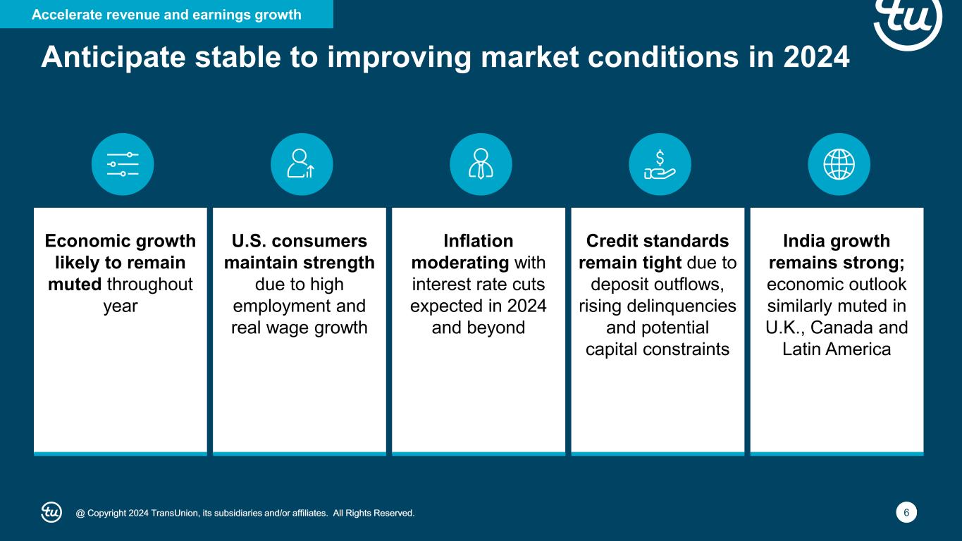 @ Copyright 2024 TransUnion, its subsidiaries and/or affiliates. All Rights Reserved. 5 Accelerate revenue and earnings growth Leverage Neustar’s capabilities further Execute transformation initiatives 1 2 3 2024 Strategic Priorities