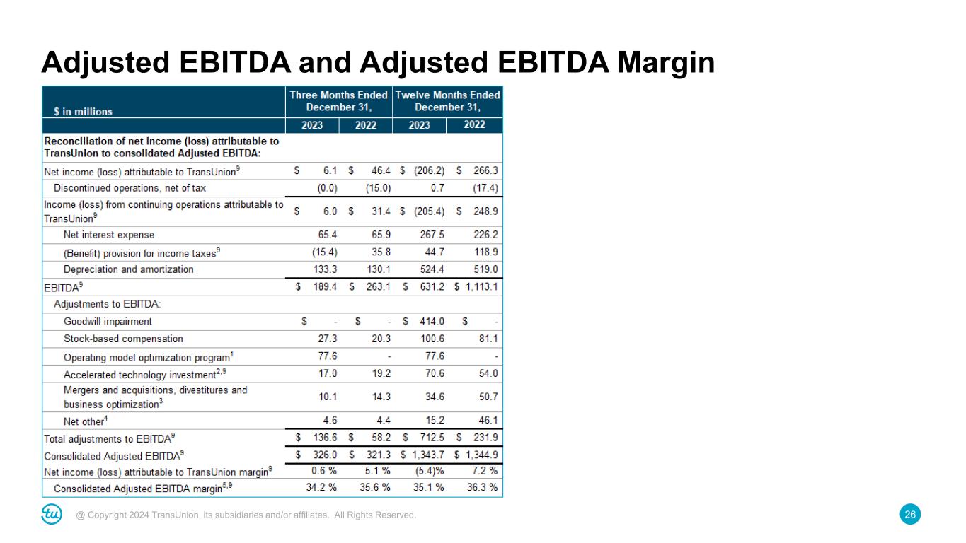 26@ Copyright 2024 TransUnion, its subsidiaries and/or affiliates. All Rights Reserved. Adjusted EBITDA and Adjusted EBITDA Margin