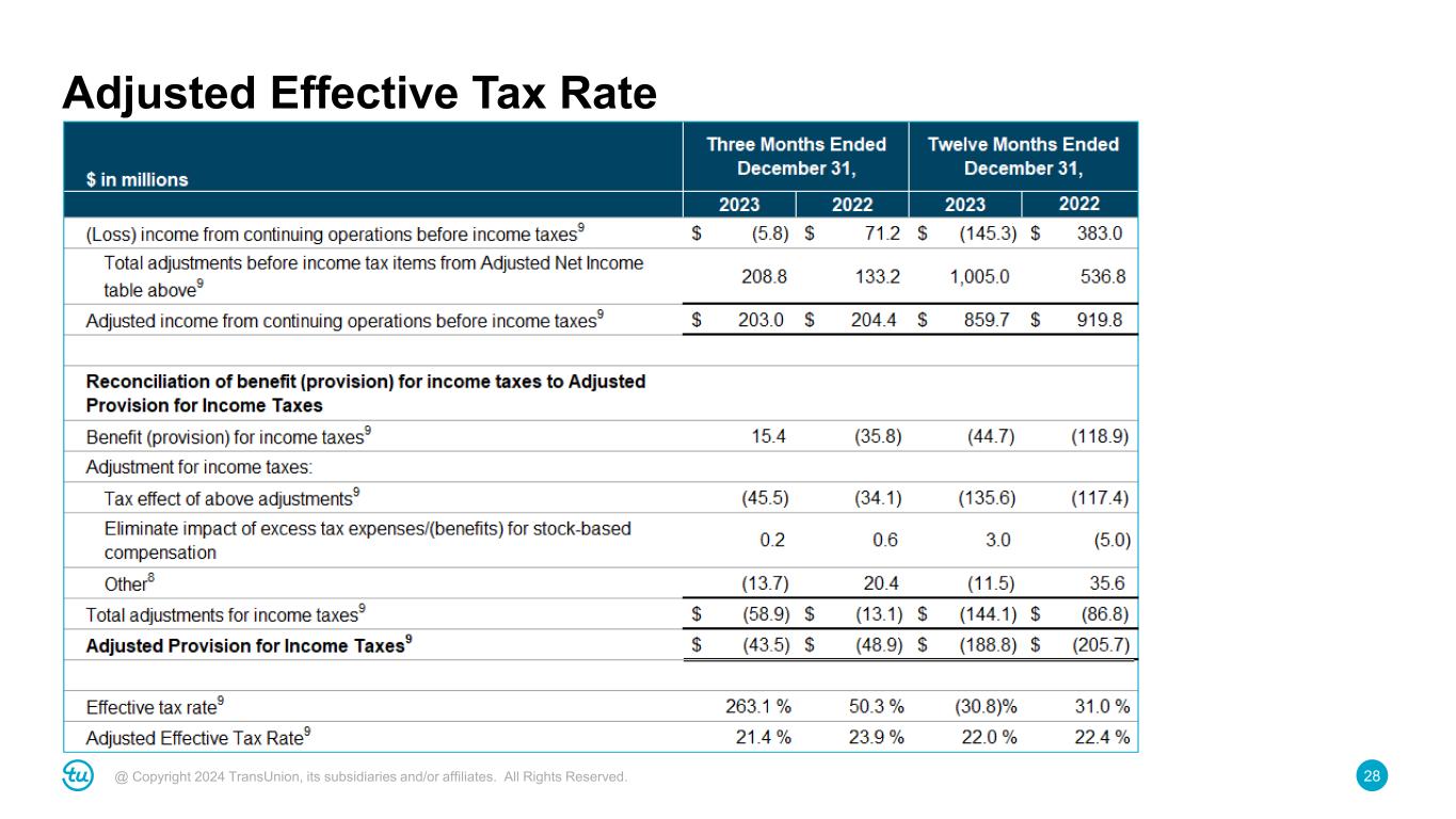 28@ Copyright 2024 TransUnion, its subsidiaries and/or affiliates. All Rights Reserved. Adjusted Effective Tax Rate