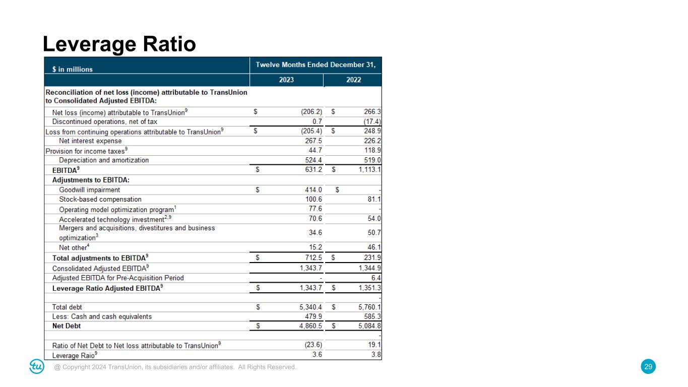29@ Copyright 2024 TransUnion, its subsidiaries and/or affiliates. All Rights Reserved. Leverage Ratio