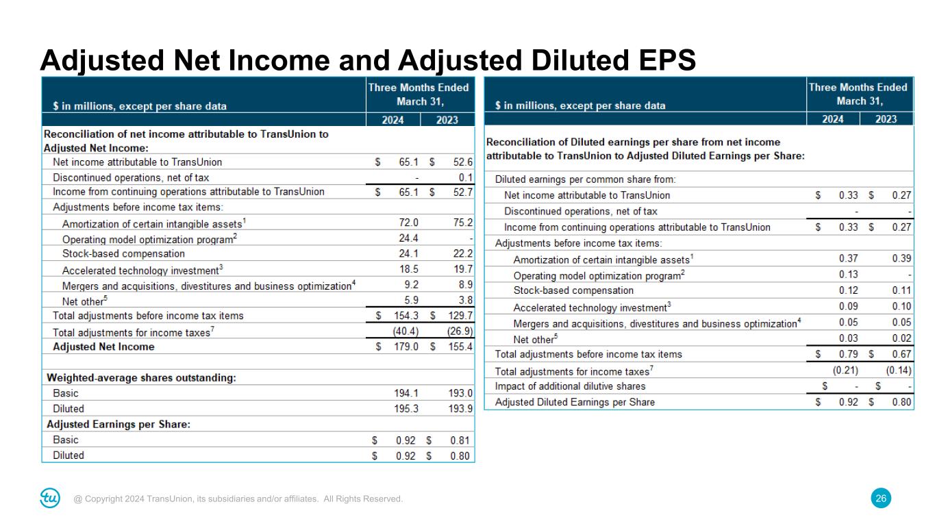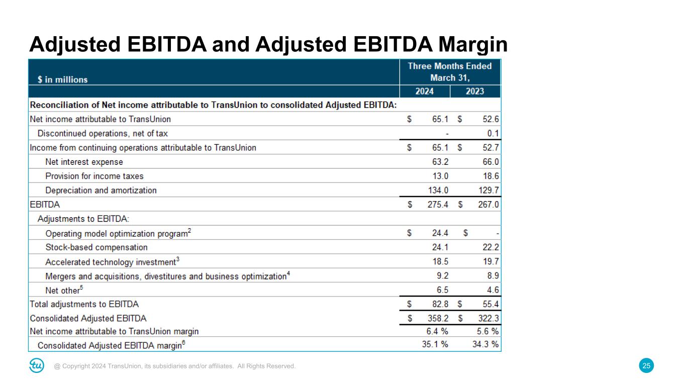 25@ Copyright 2024 TransUnion, its subsidiaries and/or affiliates. All Rights Reserved. Adjusted EBITDA and Adjusted EBITDA Margin