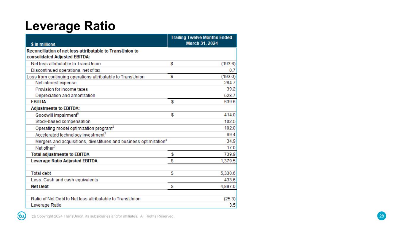 28@ Copyright 2024 TransUnion, its subsidiaries and/or affiliates. All Rights Reserved. Leverage Ratio