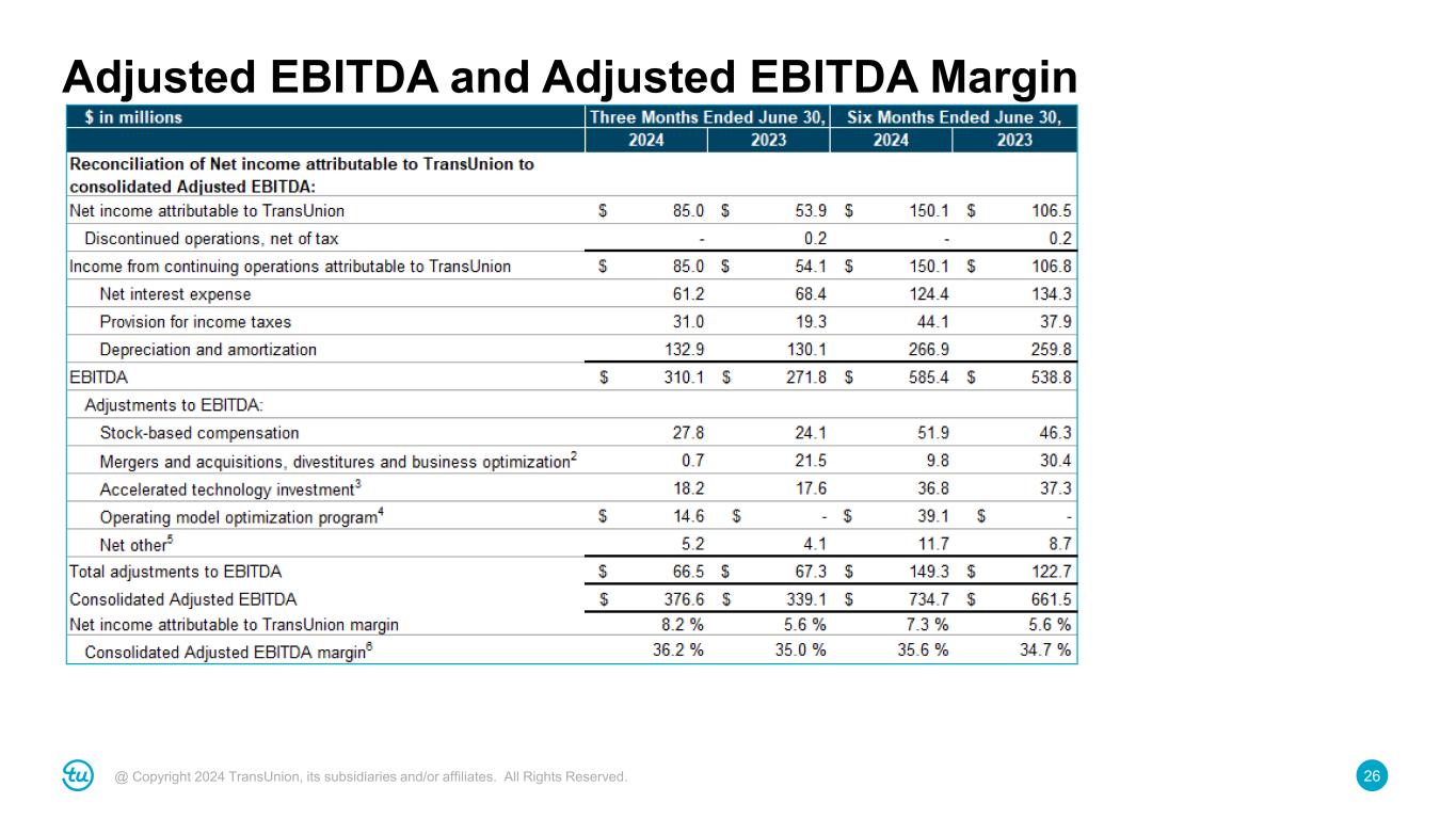 26@ Copyright 2024 TransUnion, its subsidiaries and/or affiliates. All Rights Reserved. Adjusted EBITDA and Adjusted EBITDA Margin