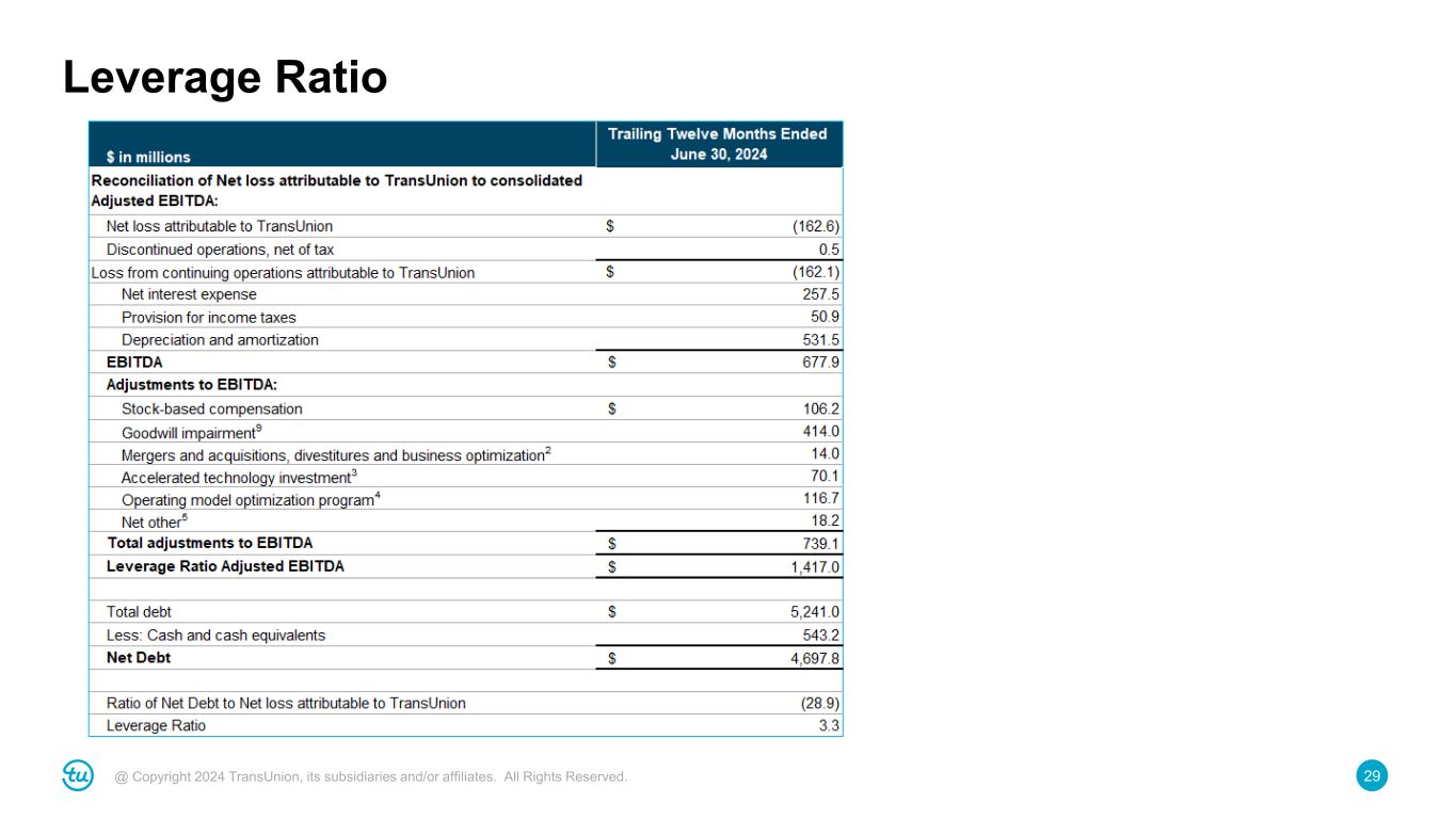 29@ Copyright 2024 TransUnion, its subsidiaries and/or affiliates. All Rights Reserved. Leverage Ratio