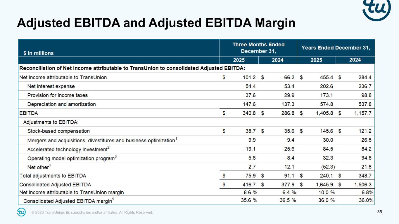 © 2026 TransUnion, its subsidiaries and/or affiliates. All Rights Reserved. 35 Adjusted EBITDA and Adjusted EBITDA Margin