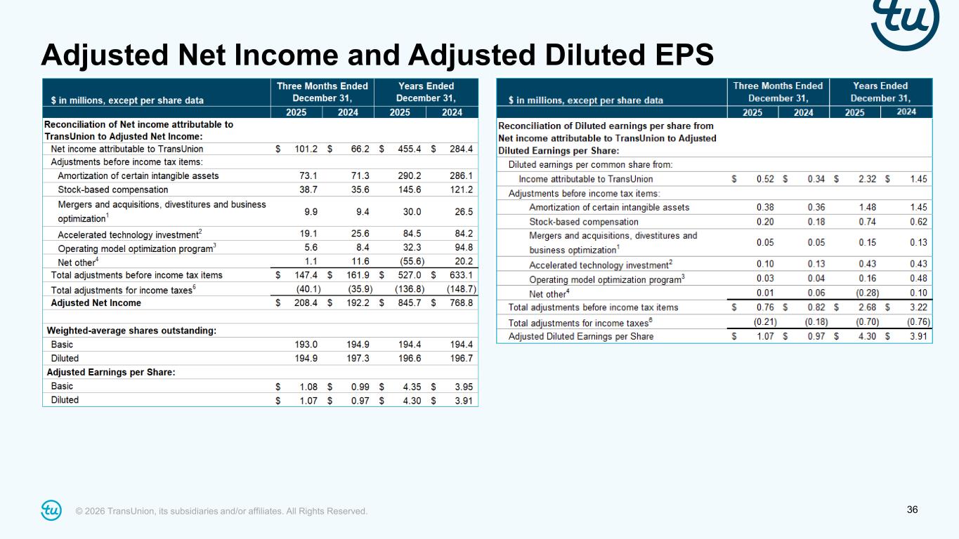 © 2026 TransUnion, its subsidiaries and/or affiliates. All Rights Reserved. 36 Adjusted Net Income and Adjusted Diluted EPS