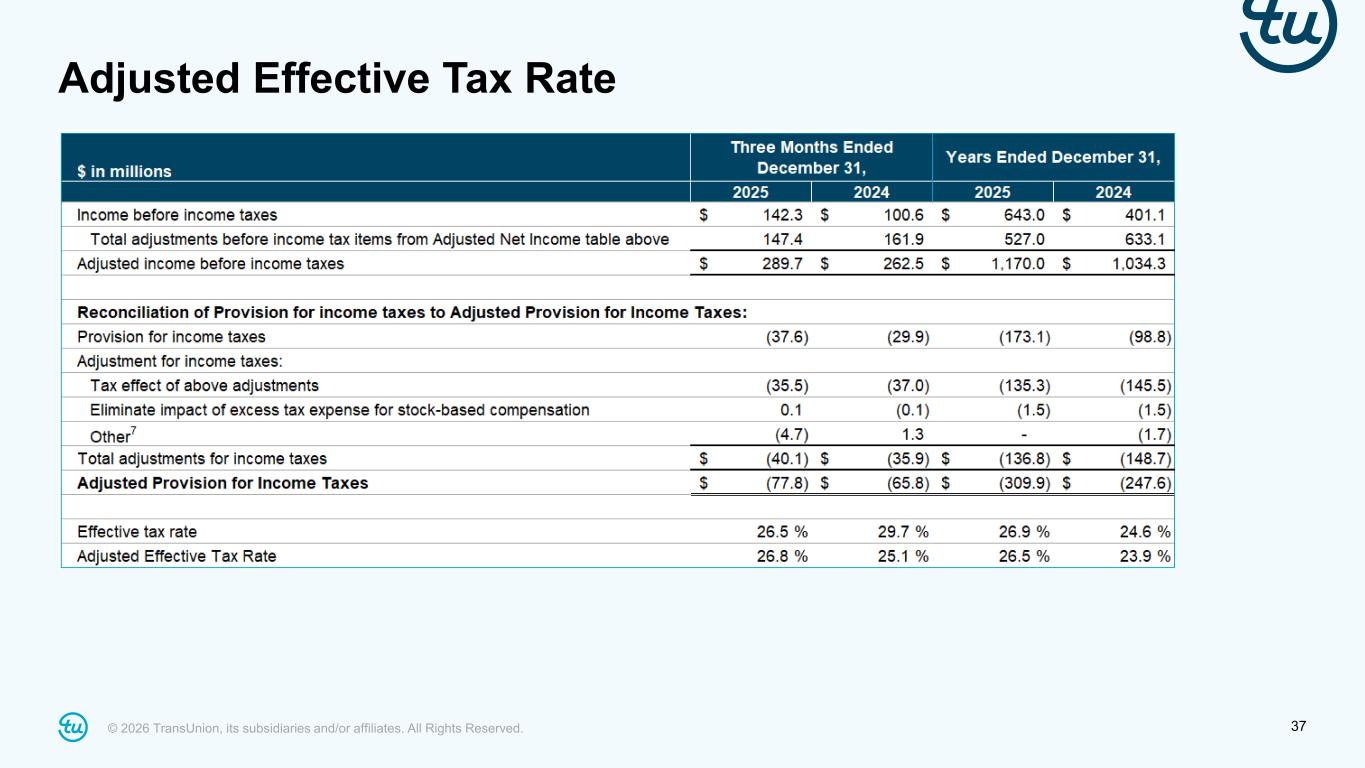 © 2026 TransUnion, its subsidiaries and/or affiliates. All Rights Reserved. 37 Adjusted Effective Tax Rate