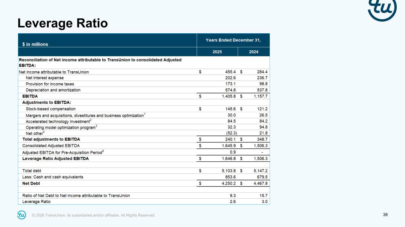 © 2026 TransUnion, its subsidiaries and/or affiliates. All Rights Reserved. 38 Leverage Ratio