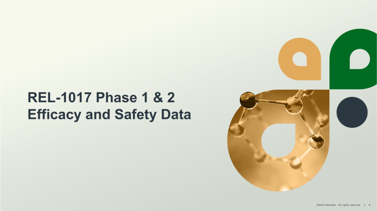 ©2023 Relmada - All rights reserved 8 REL - 1017 Phase 1 & 2 Efficacy and Safety Data