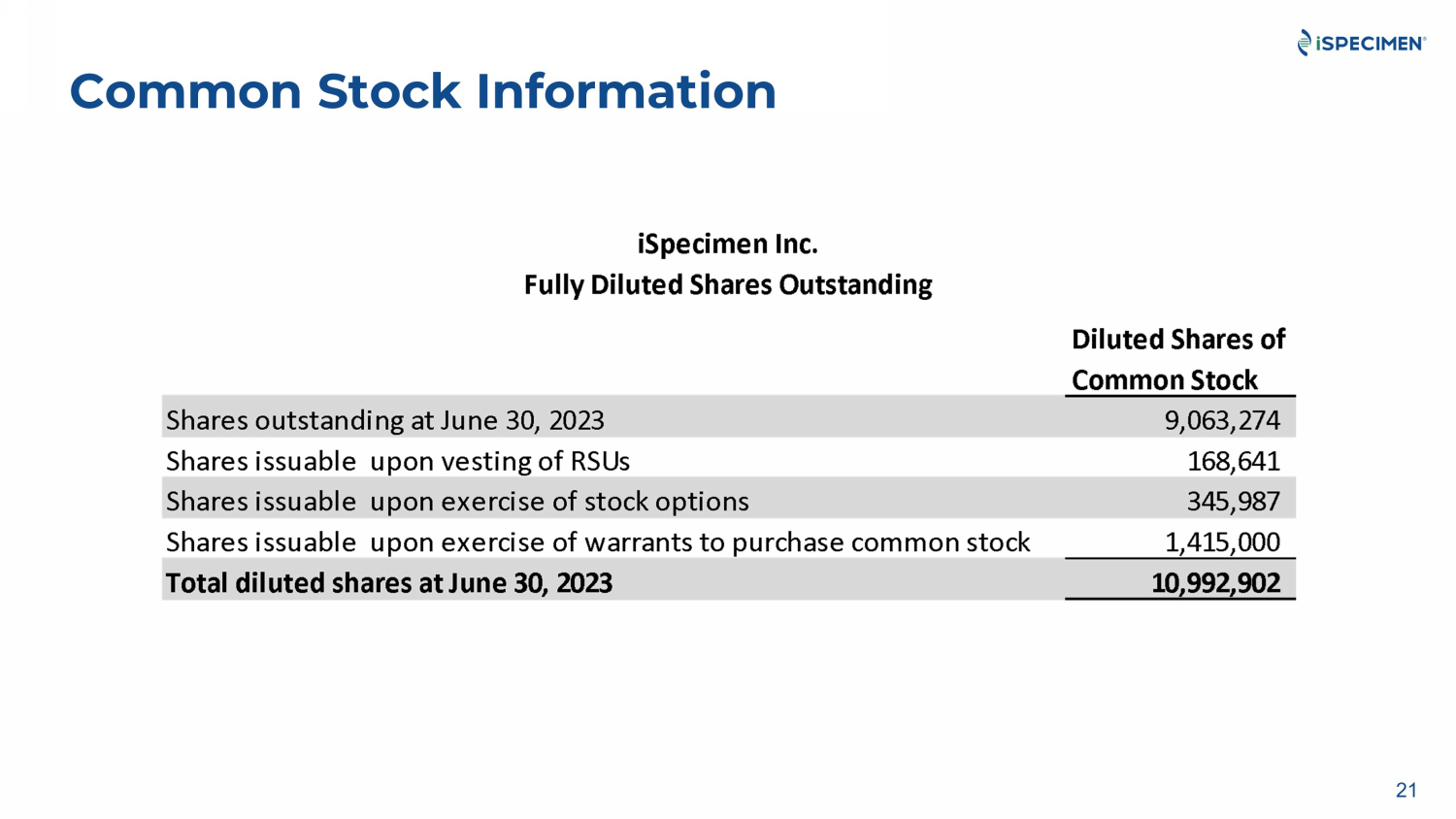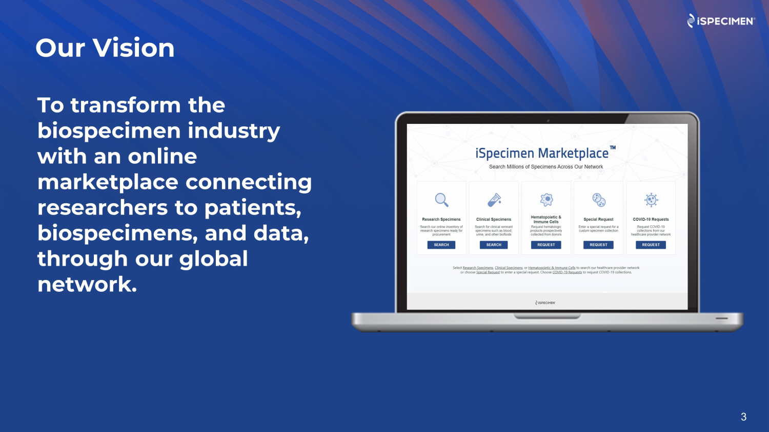 August 2023 Investor Presentation Nasdaq: ISPC The Online Marketplace for Human Biospecimens Transforming Biospecimen Procurement
