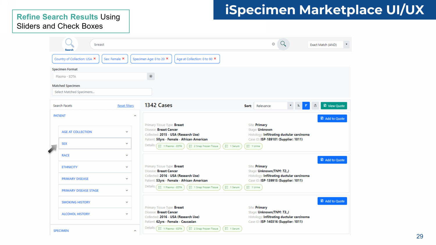 Refine Search Results Using Sliders and Check Boxes iSpecimen Marketplace UI/UX 29