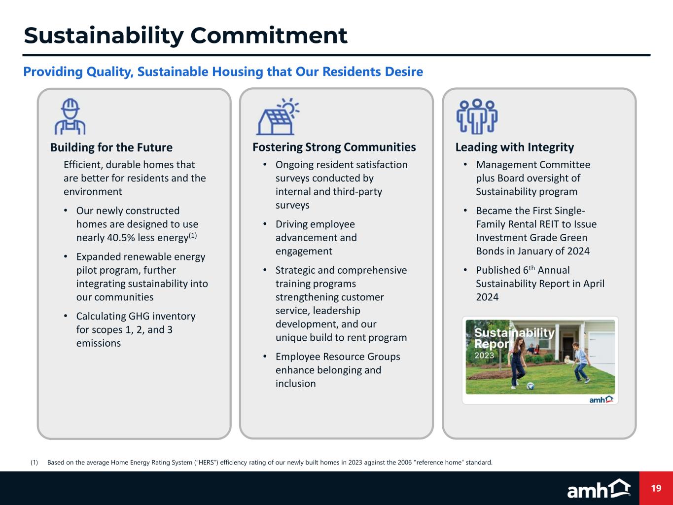 Diversified Portfolio Footprint Positioned for Long-Term Sustainable Growth and Portfolio Optimization Flexibility 30+ Markets 95.9% Same-Home Avg. Occupied Days(1) 18 Years Avg. Age per Home 21 States 58,899 Properties Owned $2,208 Same-Home Avg. Mon. Realized Rent(1) 1,993 sf Avg. Square Feet per Home Amounts presented are for total portfolio, excluding properties held for sale, as of September 30, 2024, except where noted for our Same-Home portfolio. Map represents top 20 AMH markets as a percentage of total portfolio, excluding properties held for sale. All other markets make up the remaining 13.1%. (1) Reflected for the three months ended September 30, 2024. Top 20 AMH Market AMH Development Presence Raleigh, 3.7% Charleston, 2.7% Jacksonville, 5.5% Orlando, 3.6% Tampa, 5.0% Columbus, 3.7% Chicago, 2.6% Salt Lake City, 3.3% Seattle, 1.7% Las Vegas, 4.1% Phoenix, 5.6% Dallas, 6.6% San Antonio, 2.0% Cincinnati, 3.6% Nashville, 5.7% Atlanta, 10.0% Indianapolis, 4.8% Houston, 3.9% Charlotte, 7.0% Savannah, 1.8% Boise Denver 5