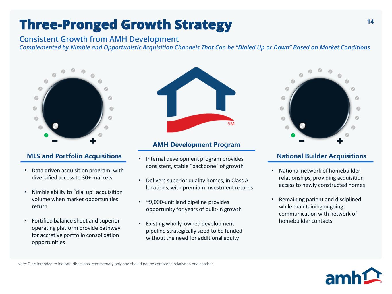 14Three-Pronged Growth Strategy Consistent Growth from AMH Development Complemented by Nimble and Opportunistic Acquisition Channels That Can be “Dialed Up or Down” Based on Market Conditions • Data driven acquisition program, with diversified access to 30+ markets • Nimble ability to “dial up” acquisition volume when market opportunities return • Fortified balance sheet and superior operating platform provide pathway for accretive portfolio consolidation opportunities • Internal development program provides consistent, stable “backbone” of growth • Delivers superior quality homes, in Class A locations, with premium investment returns • ~9,000-unit land pipeline provides opportunity for years of built-in growth • Existing wholly-owned development pipeline strategically sized to be funded without the need for additional equity • National network of homebuilder relationships, providing acquisition access to newly constructed homes • Remaining patient and disciplined while maintaining ongoing communication with network of homebuilder contacts MLS and Portfolio Acquisitions National Builder Acquisitions AMH Development Program Note: Dials intended to indicate directional commentary only and should not be compared relative to one another.
