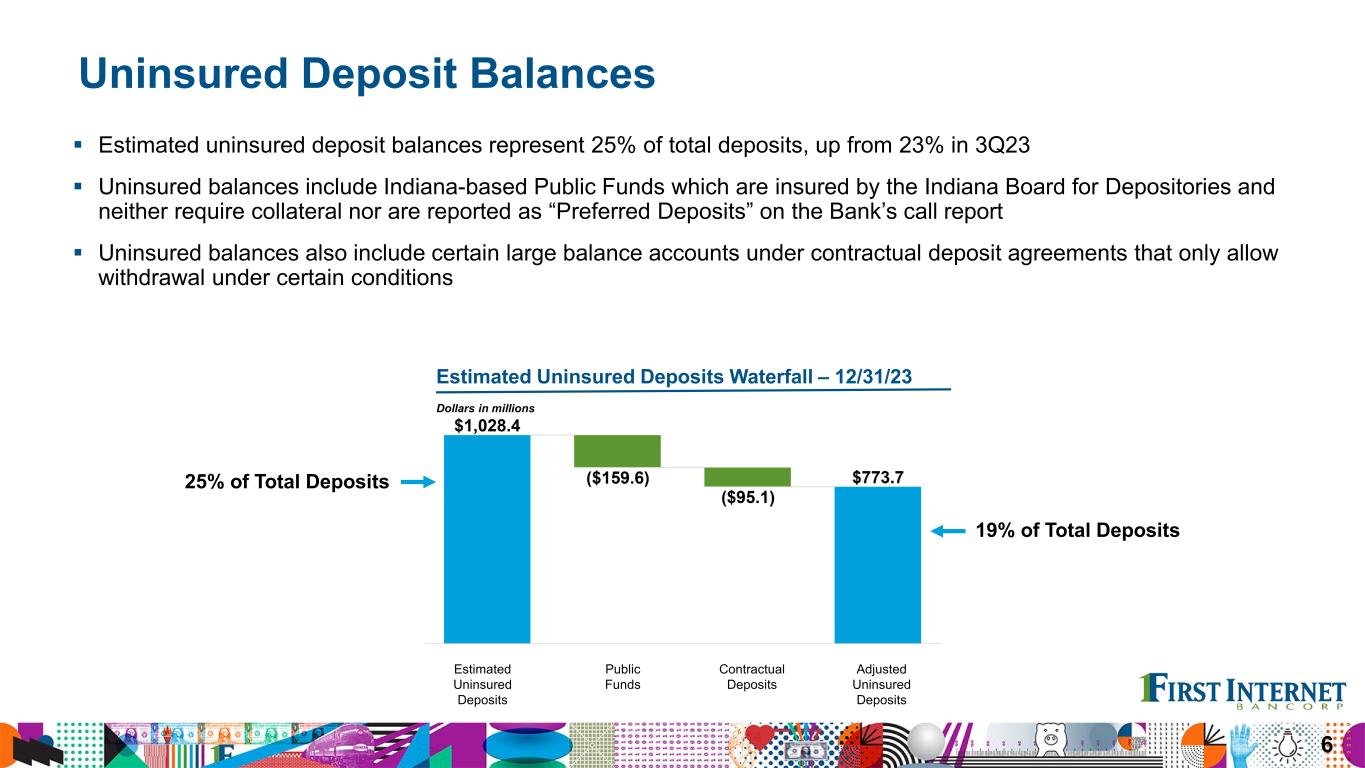 Uninsured Deposit Balances 6  Estimated uninsured deposit balances represent 25% of total deposits, up from 23% in 3Q23  Uninsured balances include Indiana-based Public Funds which are insured by the Indiana Board for Depositories and neither require collateral nor are reported as “Preferred Deposits” on the Bank’s call report  Uninsured balances also include certain large balance accounts under contractual deposit agreements that only allow withdrawal under certain conditions Estimated Uninsured Deposits Public Funds Contractual Deposits Adjusted Uninsured Deposits Estimated Uninsured Deposits Waterfall – 12/31/23 Dollars in millions 25% of Total Deposits 19% of Total Deposits